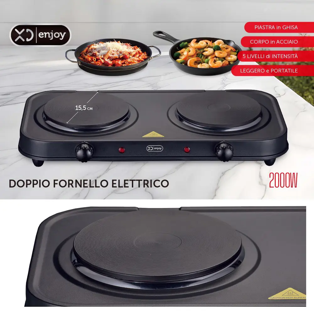 XD Enjoy XDWL2018, Nero, Superficie piana, Piastra sigillata, Di ghisa, 2 Fornello(i), 2 Fornello(i)