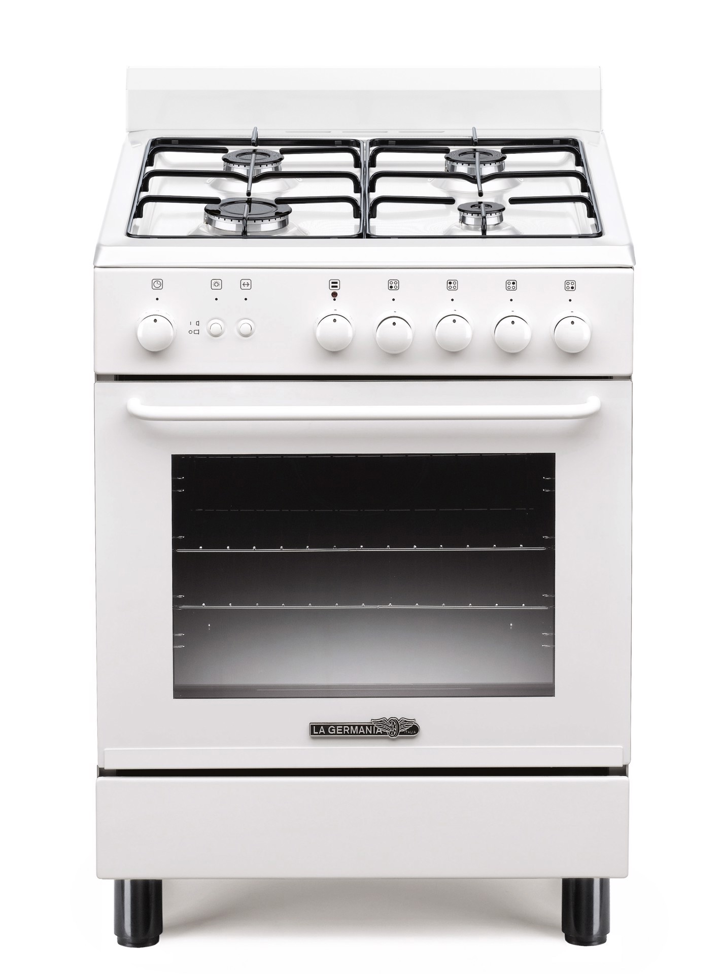 Bertazzoni La Germania Americana S64041WT/24. Tipo di prodotto: Cucina, Colore del prodotto: Bianco, Tipo di controllo: Manopola. Tipo di piano cottura: Gas, Numero totale di fuochi: 4 Fornello(i), Tipo di gas: Metano/GPL. Sorgente di alimentazione del forno: Elettrico, Posizione del forno: Fondo, Apertura della porta del forno: Apertura dall'alto in basso. Tensione di ingresso AC: 230 V, Frequenza di ingresso AC: 50 Hz. Larghezza: 600 mm, Profondità: 600 mm