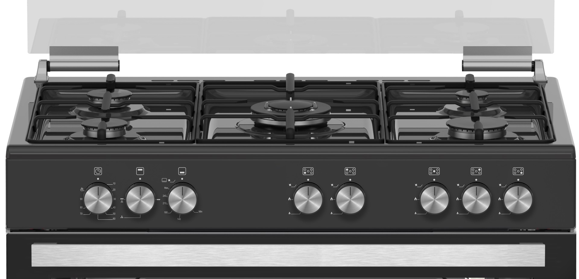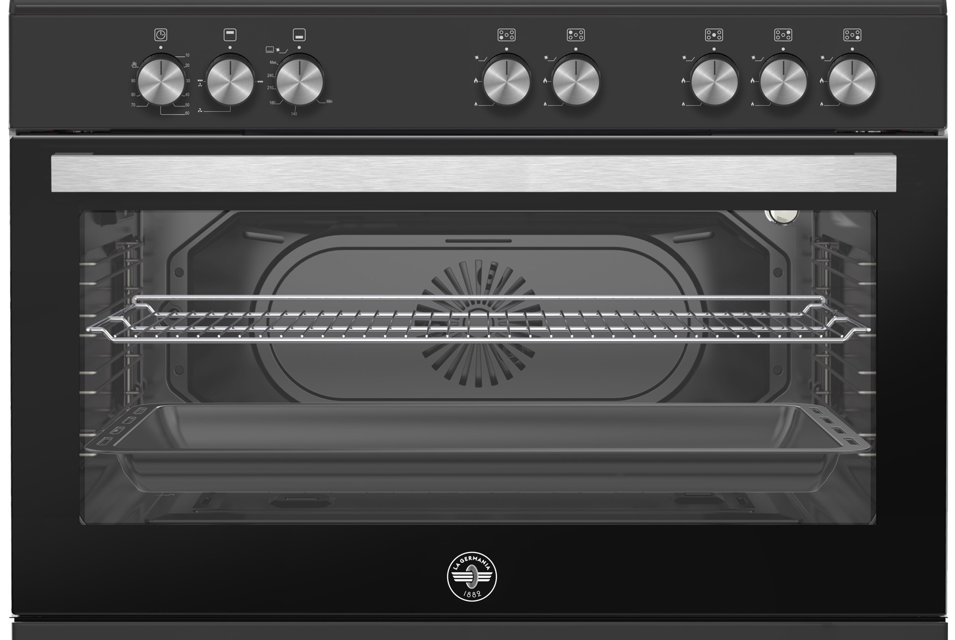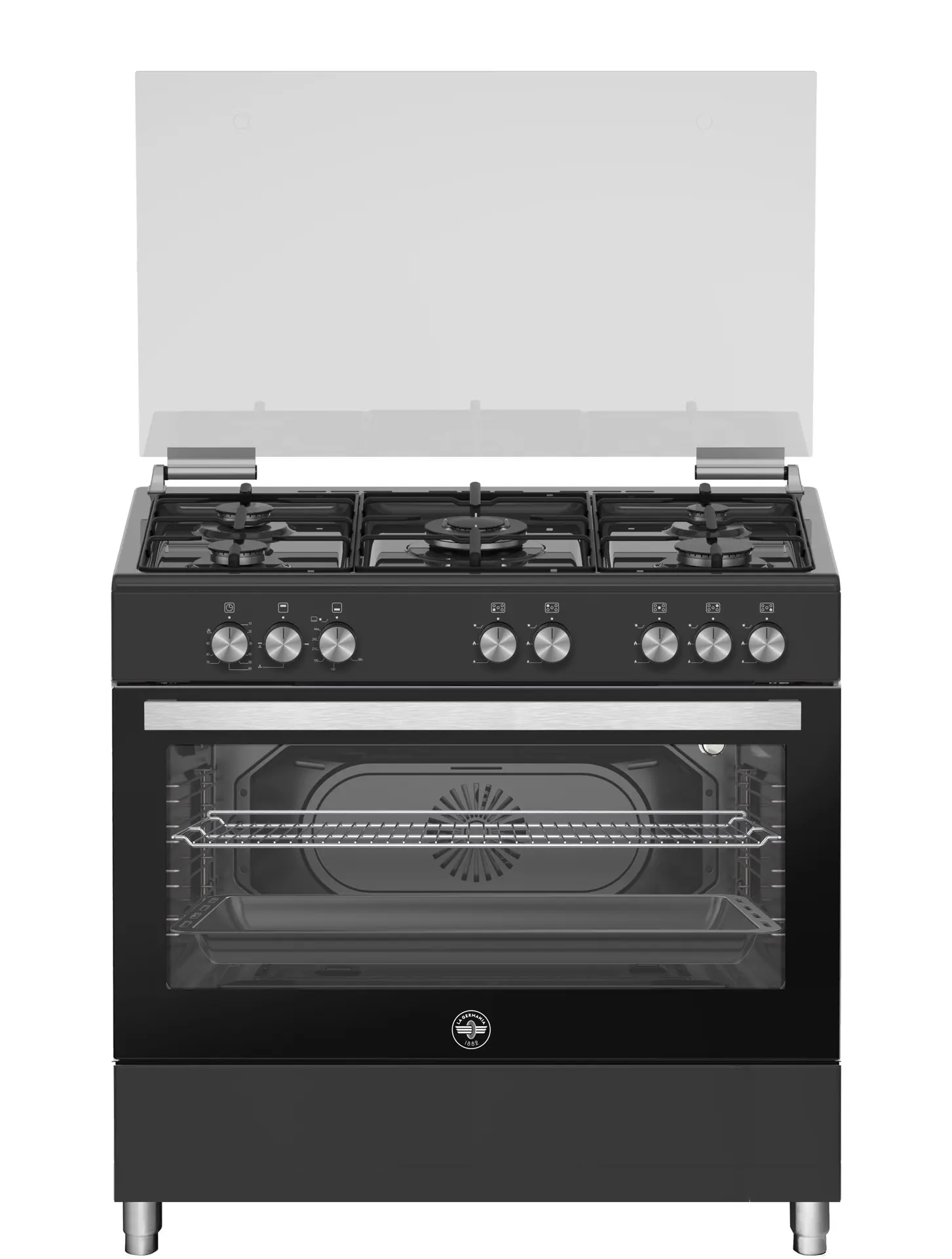 Bertazzoni La Germania Americana SE965GNE. Tipo di prodotto: Cucina, Colore del prodotto: Nero, Tipo di controllo: Manopola. Tipo di piano cottura: Gas, Numero totale di fuochi: 5 Fornello(i), Numero di fuochi: 5 Fornello(i). Dimensione del forno: Largo, Sorgente di alimentazione del forno: Elettrico, Capacità netta del forno: 93 L. Tipo di timer del forno: Meccanico. Tensione di ingresso AC: 220 - 240 V, Frequenza di ingresso AC: 50 Hz