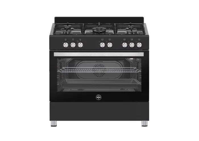 Questa cucina dal forno singolo presenta dalle linee pulite ed eleganti, con finiture in nero e acciaio, che donano alla tua cucina uno stile inconfondibile. Il forno a gas possiede 4 funzioni. La cucina è dotata di contaminuti. Il piano cottura è dotato di 5 fuochi a gas, incluso un bruciatore ad alto rendimento con doppia corona con potenza fino a 3,5 KW. I colori visualizzati possono variare a seconda delle impostazioni e della risoluzione dello schermo del computer. Per maggiori informazioni contatta il tuo rivenditore.
