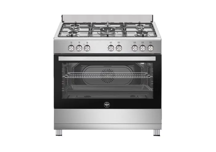 Questa cucina dal forno singolo presenta dalle linee pulite ed eleganti, con finiture in nero e acciaio, che donano alla tua cucina uno stile inconfondibile. Il forno a gas possiede 4 funzioni. La cucina è dotata di contaminuti. Il piano cottura è dotato di 5 fuochi a gas, incluso un bruciatore ad alto rendimento con doppia corona con potenza fino a 3,5 KW. I colori visualizzati possono variare a seconda delle impostazioni e della risoluzione dello schermo del computer. Per maggiori informazioni contatta il tuo rivenditore.