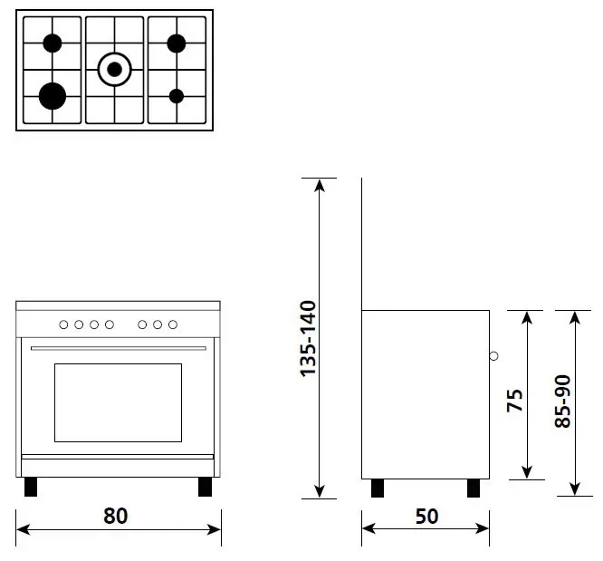 Glem Gas A855GX, Cucina, Bianco, Manopola, Frontale, Gas, 5 Fornello(i)
