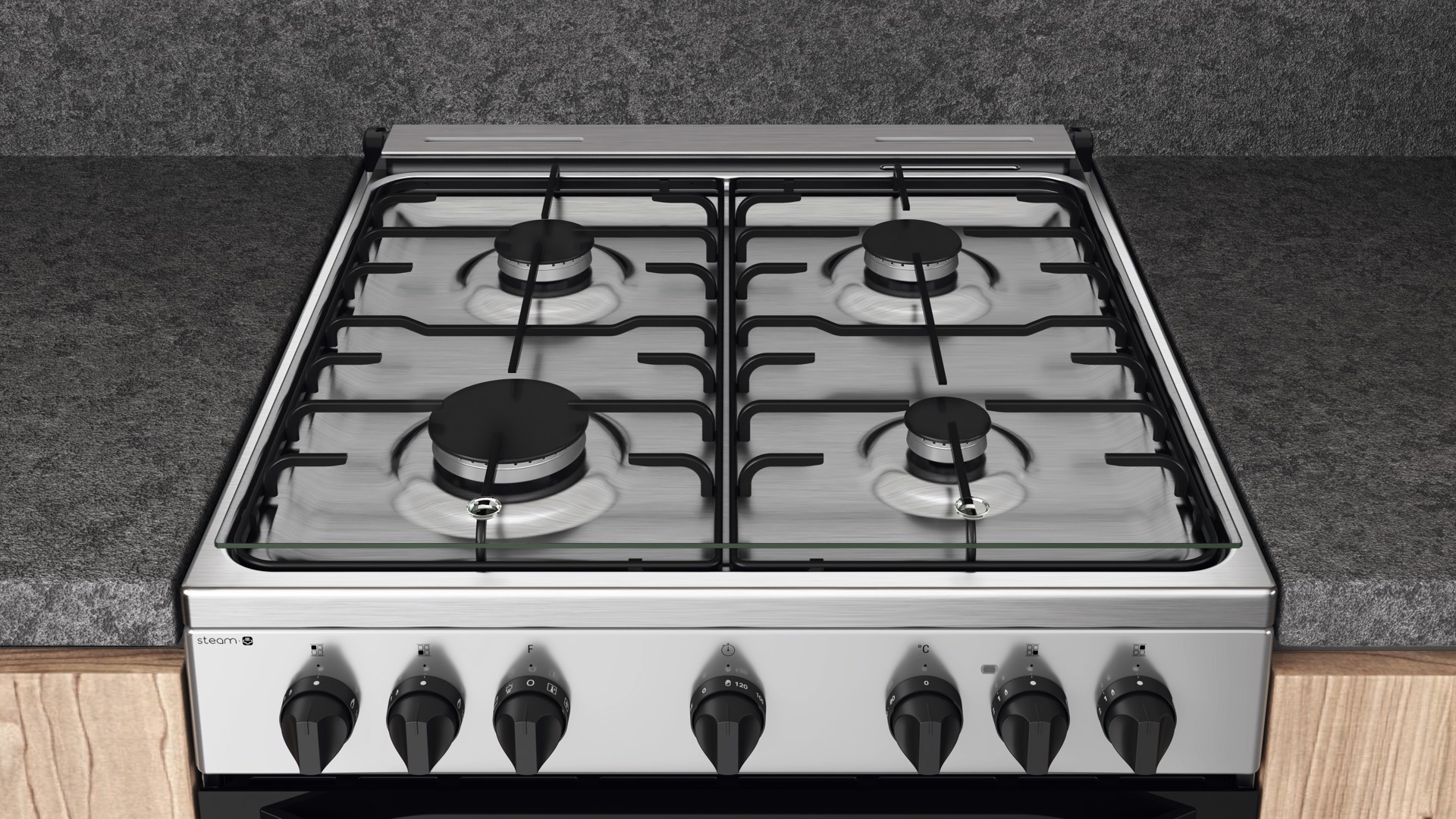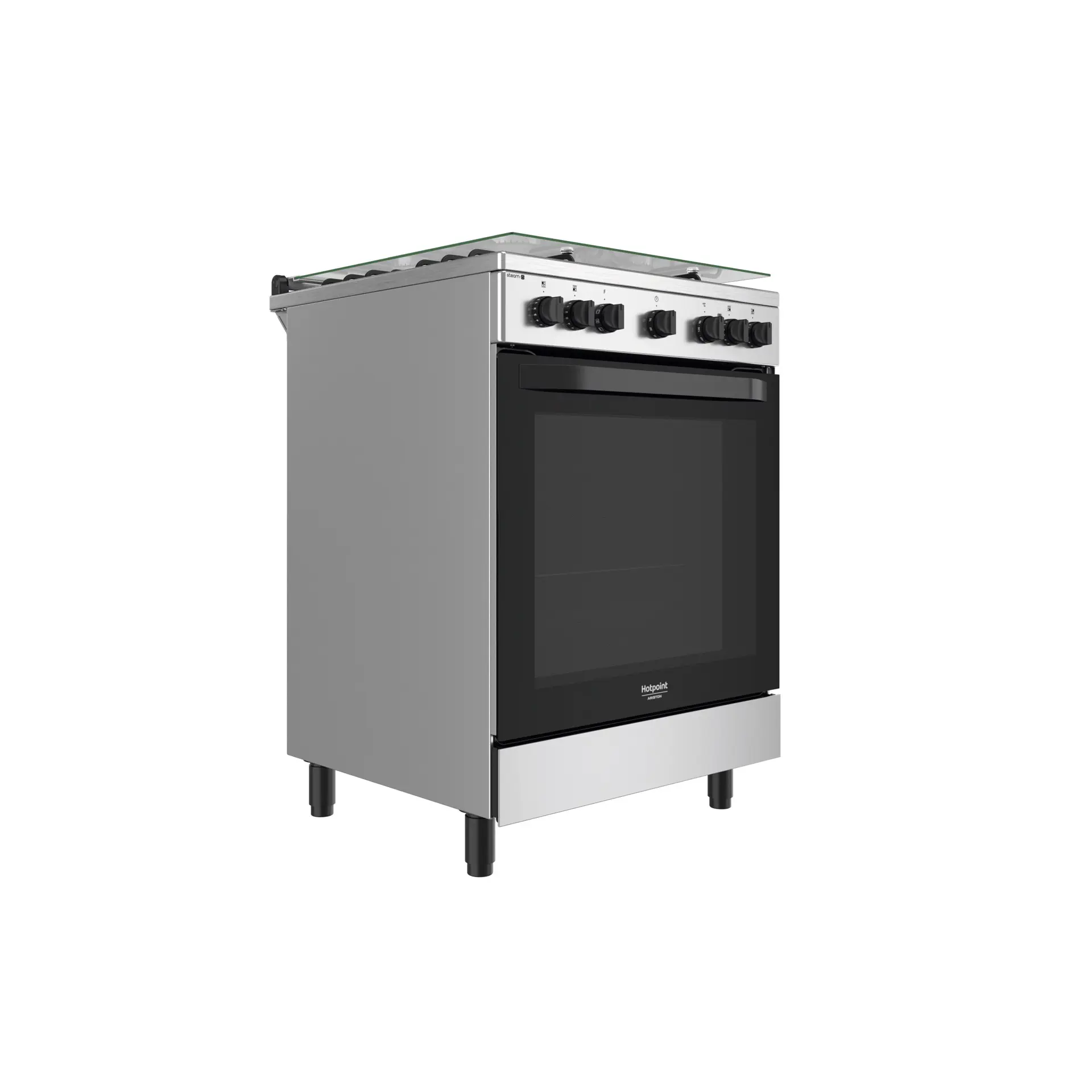 HOTPOINT HS68G5PHX/E/1 Cucina Elettrico Gas Nero, Acciaio inossidabile A