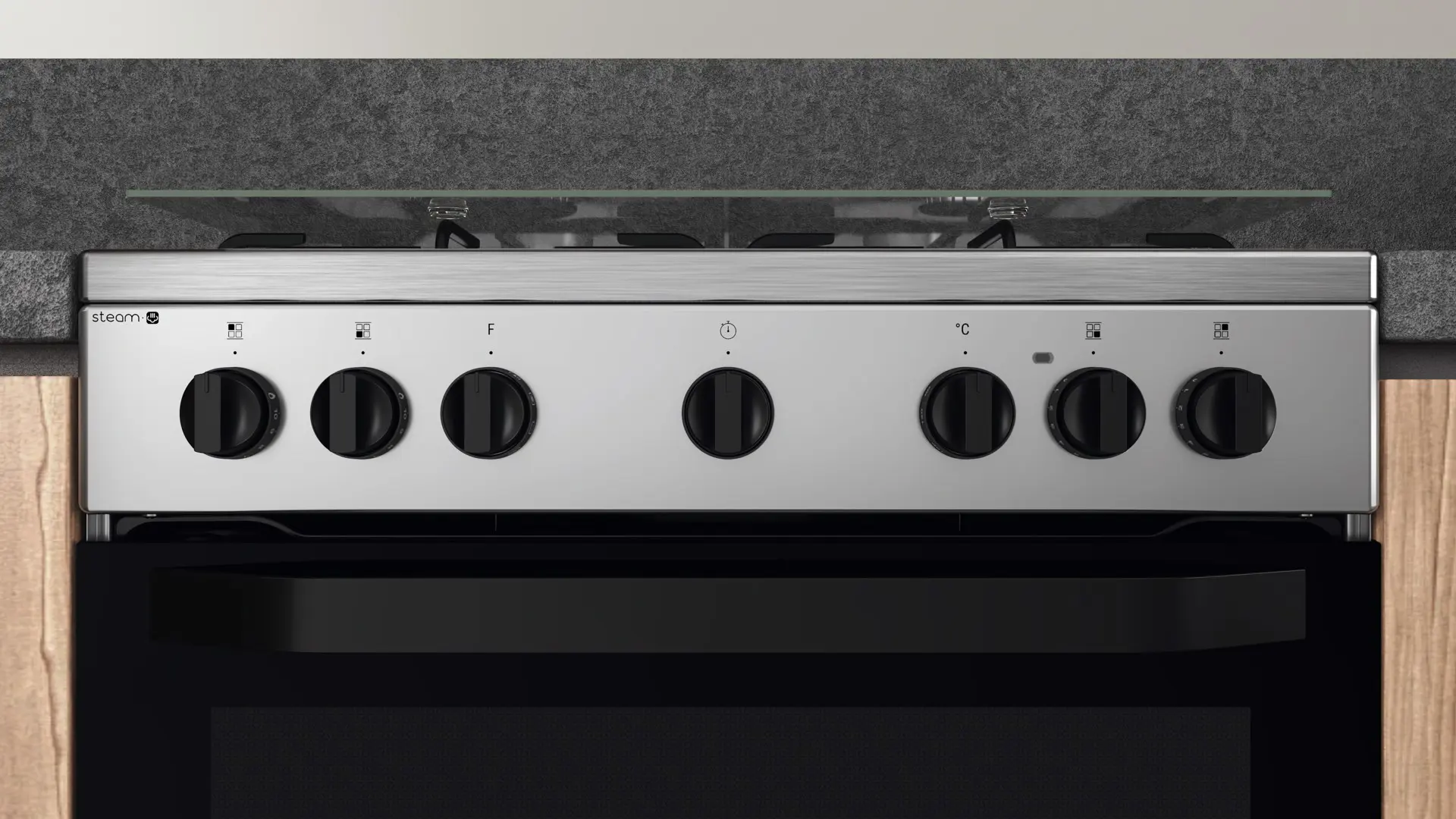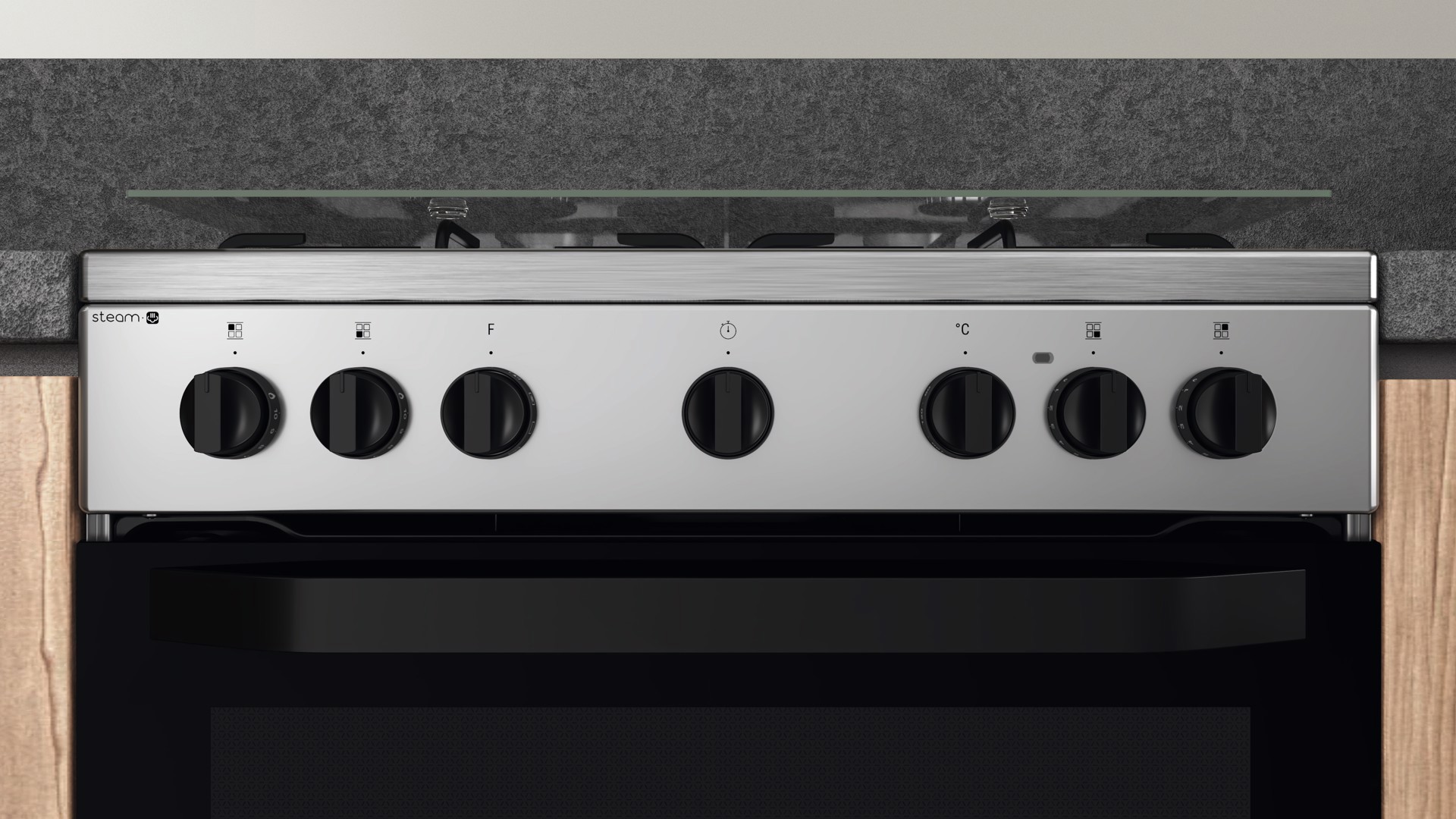 Hotpoint HS68G5PHX/E/1, Cucina, Nero, Acciaio inossidabile, Manopola, Nero, Frontale, 1 m