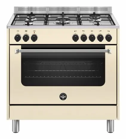Questa cucina, con forno singolo, è dotata di un piano di lavoro in acciaio inossidabile, stampato in un pezzo unico, con 5 fuochi, tra cui un bruciatore a doppia corona, ad alta resa, che permette un controllo preciso della fiamma, dalla cottura simmer, a fuoco.