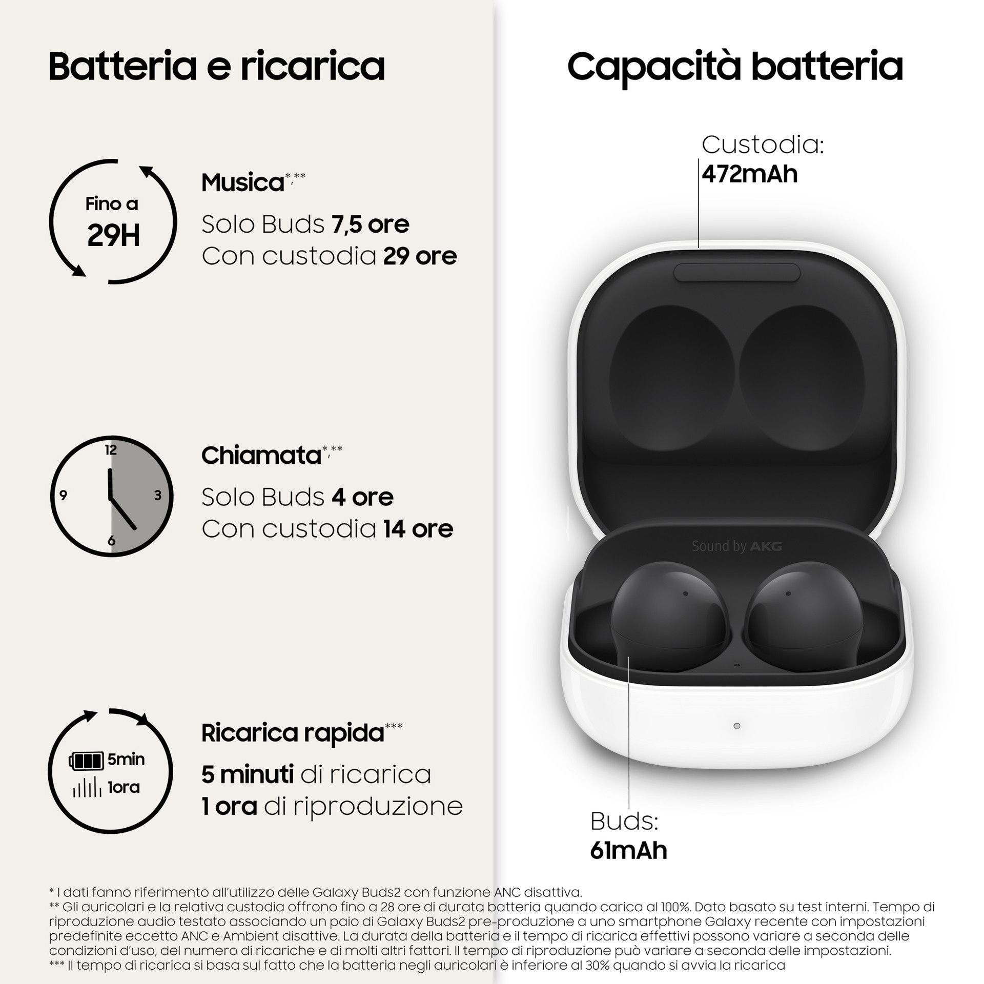 | Capacità della batteria (custodia di ricarica) | 472 mAh |