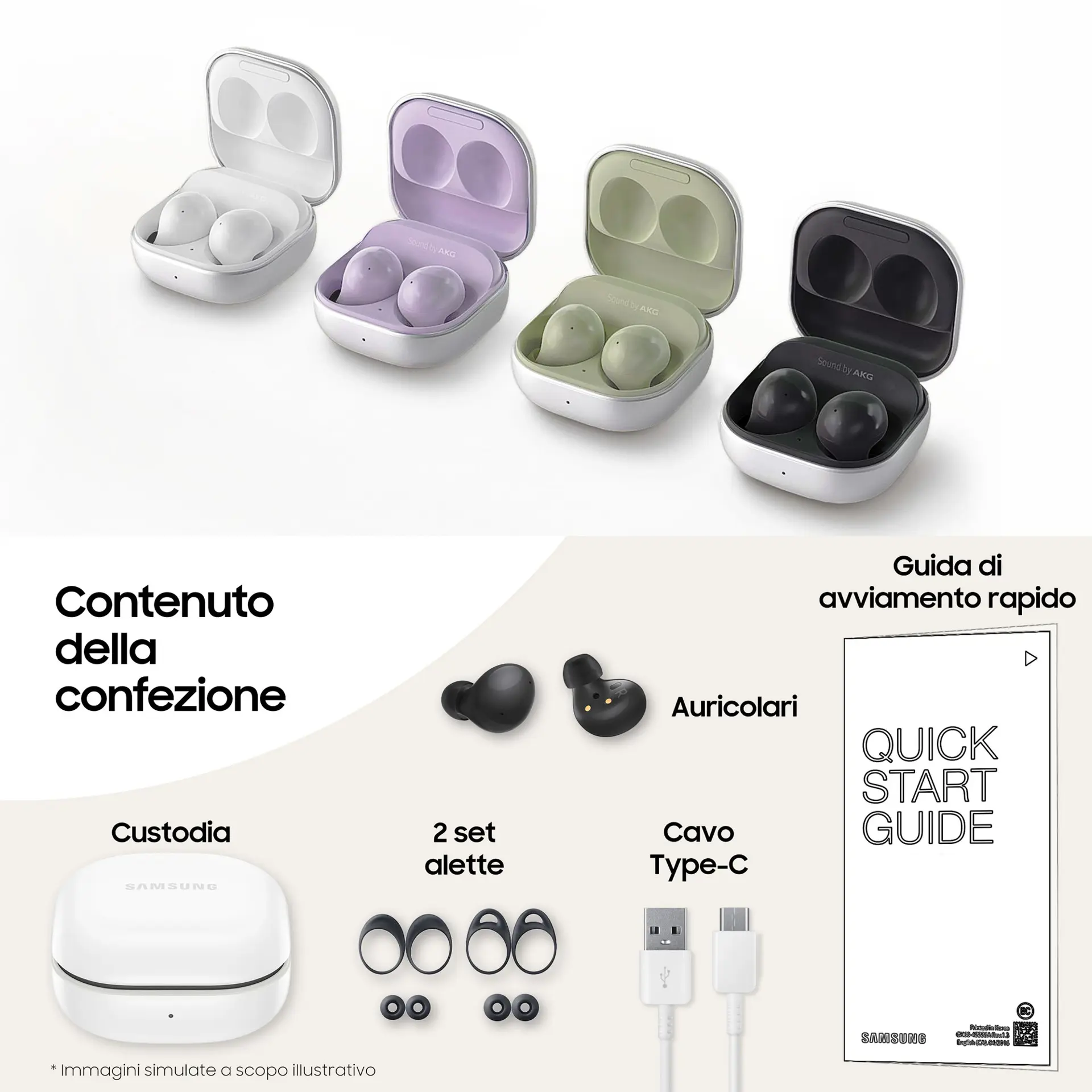 Samsung Galaxy Buds2 Auricolari Bluetooth Graphite Batteria 472 mAh. Tipo di prodotto: Cuffia, Stile d'uso: Auricolare, Utilizzo raccomandato: Chiamate e musica. Tecnologia di connessione: Senza fili. Disegno auricolare: Intraurale, Sistema acustico: Chiuso, Tipologia driver: Dinamico. Tipo di microfono: Integrata. Tipo batteria: Batteria integrata, Capacità della batteria per auricolare destro: 61 mAh, Capacità della batteria per auricolare sinistro: 61 mAh