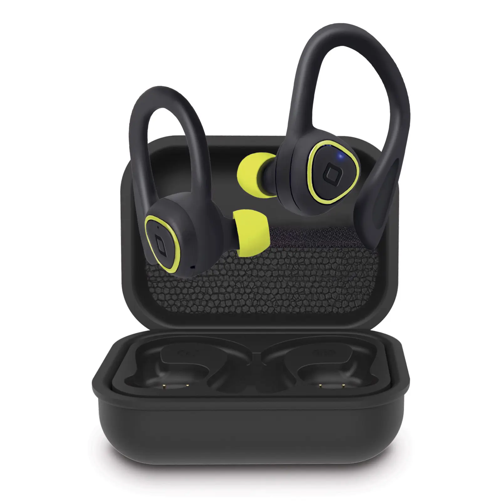 Riponi comodamente i tuoi auricolari Sport Races True Wireless Stereo con archetti all’interno della pratica custodia con chiusura a zip da 350 mAh (milliampere-ora) per ricaricarli rapidamente.
