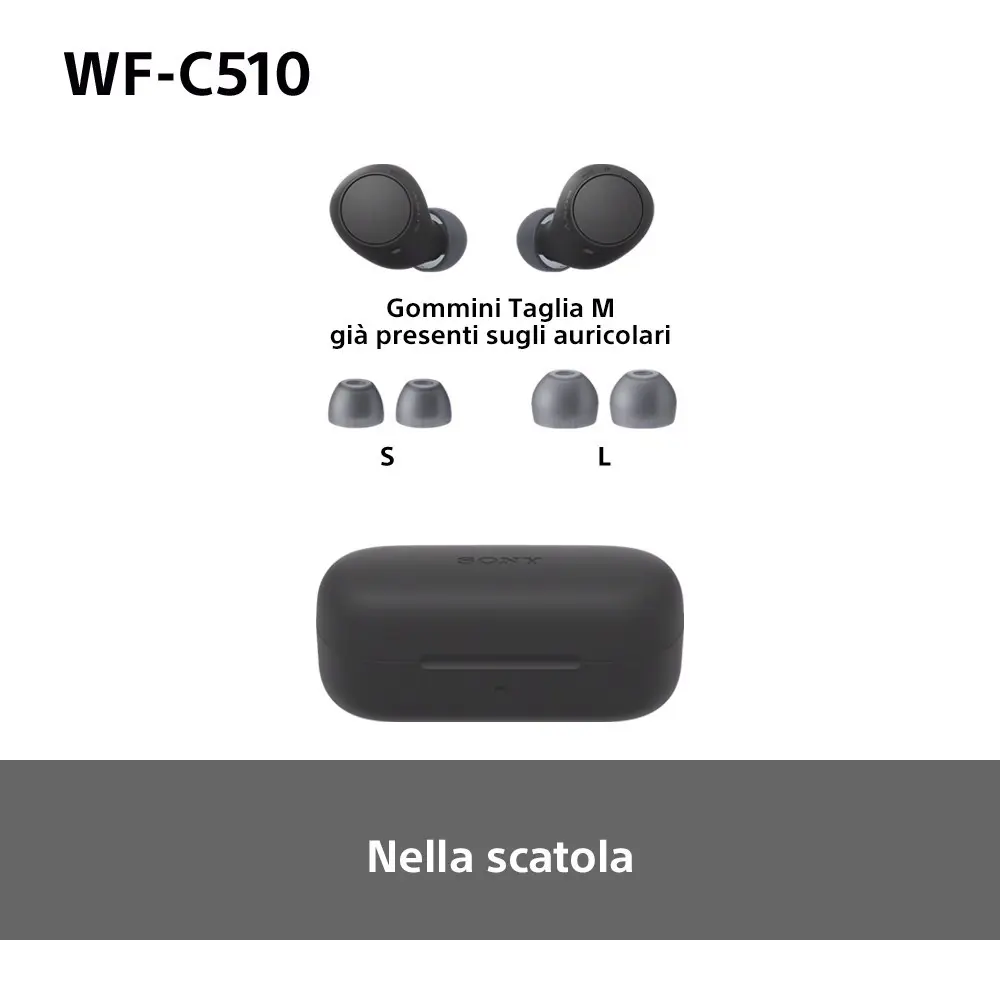 Ti presentiamo gli auricolari Sony WF-C510: incredibilmente comodi, con una fantastica qualità del suono e ricchi di funzionalità, questi sono tra i nostri auricolari più piccoli e leggeri di sempre! Con ogni auricolare che pesa solo 4,6 g, in un design ergonomico che garantisce comfort e stabilità, questi auricolari Bluetooth possono essere indossati per lungo tempo in perfetto comfort. Suonano anche in modo fantastico. Con la tecnologia DSEE di Sony per eseguire l'upscaling della musica compressa più vicino alla sua qualità originale e un equalizzatore facile da usare che ti consente di modificare l'audio secondo le tue preferenze personali, ad esempio, aumentando i bassi per un suono più ricco e profondo o aumentando gli alti per una maggiore chiarezza e dettaglio. In alternativa, puoi scegliere tra uno dei preset audio per trovare il suono migliore per te. Questi auricolari Bluetooth Sony sono dotati della modalità Ambient Sound, così puoi rimanere consapevole di ciò che ti circonda senza dover interrompere la musica o rimuovere gli auricolari. Perfetto per stare al sicuro quando vai a fare jogging, ascoltare gli annunci e altro ancora. Con 22 ore di riproduzione (11 ore dagli auricolari, più 11 ore extra dalla custodia) puoi continuare ad ascoltare il WF-C510 tutto il giorno. E con una funzione di ricarica rapida che ti offre 1 ora di riproduzione con una ricarica di soli 5 minuti, non rimarrai senza la tua musica a lungo. Gli auricolari wireless sono classificati IPX4, il che significa che sono resistenti all'acqua. Quindi, non c'è bisogno di preoccuparsi del sudore dell'allenamento o di essere sorpresi dalla pioggia. Incredibilmente leggeri, estremamente confortevoli e disponibili in quattro diversi colori, puoi goderti la tua musica con stile con i WF-C510.