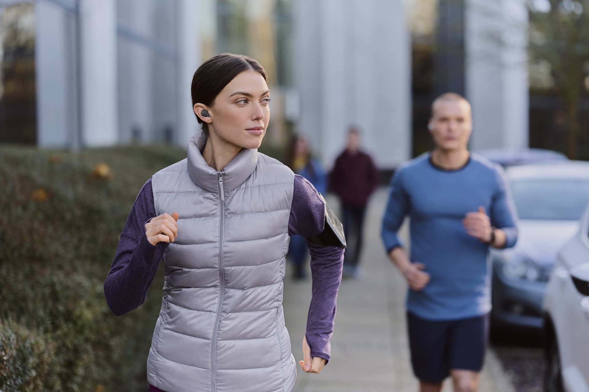 La qualità delle chiamate su questi auricolari con microfono è fantastica, con la nostra tecnologia Precise Voice Pickup che offre un suono cristallino alla persona dall'altra parte del telefono, anche se ti trovi in un ambiente rumoroso.