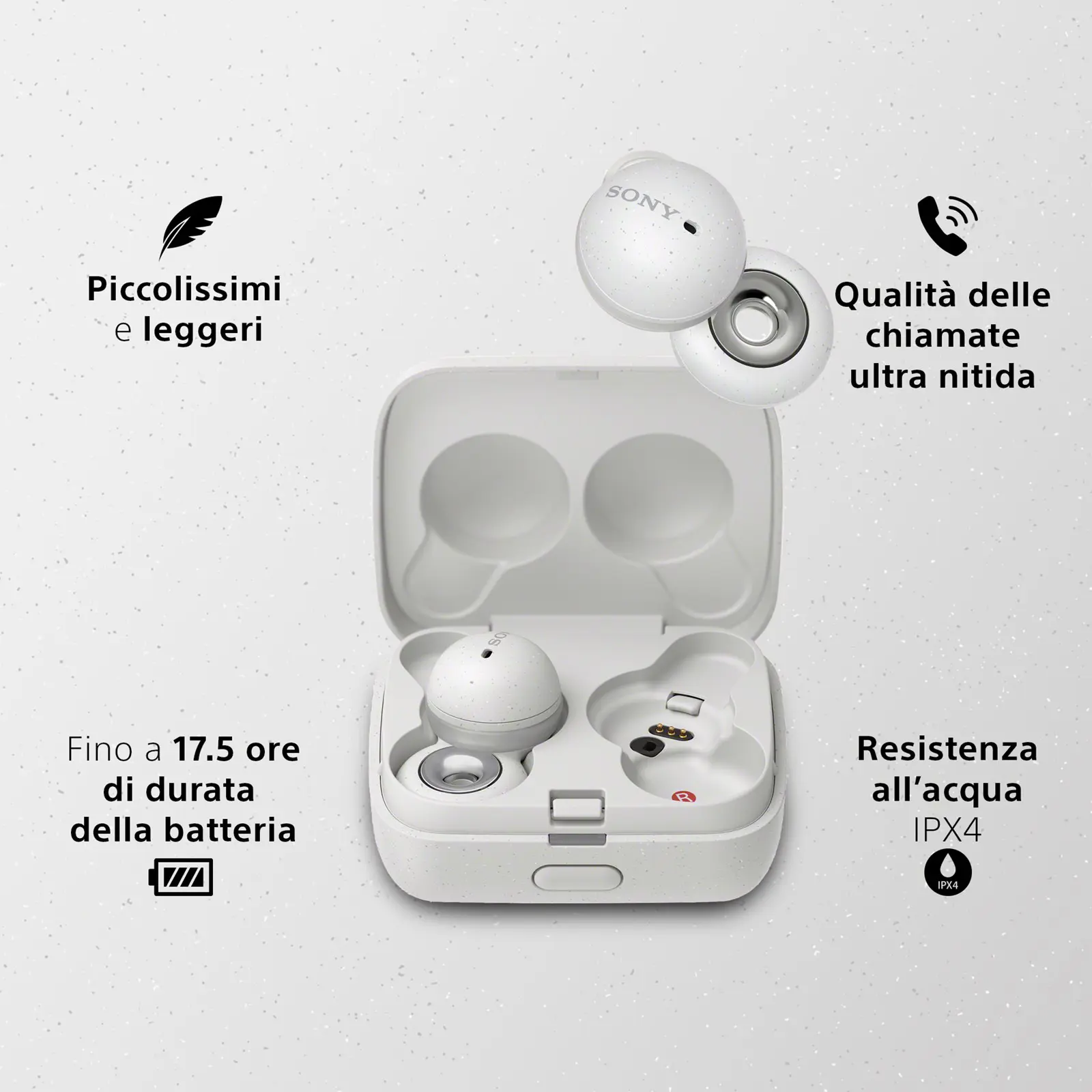 Dotati di una serie di funzioni di ascolto intelligenti come l'Adaptive Sound Control, nonché un'ampia Tap Area per un miglior controllo della riproduzione, i LinkBuds sono davvero facili da usare. Sono anche resistenti all'acqua IPX4, con un massimo di 17.5 ore di autonomia della batteria e ricarica rapida, per cui non devi mai spegnere i tuoi auricolari.