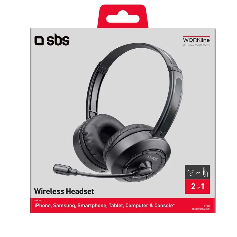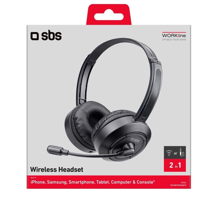 SBS TESMHEADPHBTK, Con cavo e senza cavo, Musica e Chiamate, Auricolare, Nero