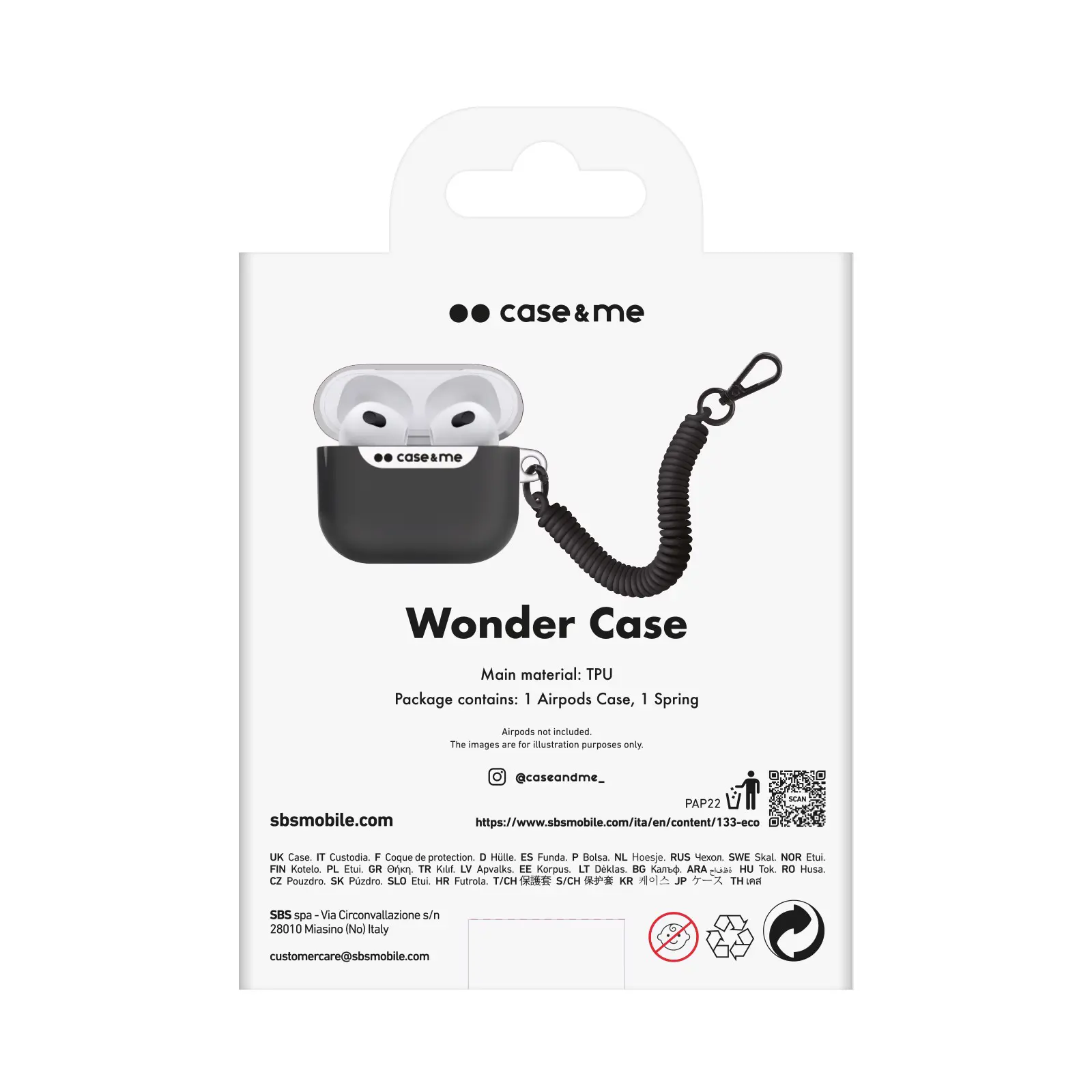 Proteggi i tuoi AirPods 3 da urti e graffi con la custodia Wonder. Il materiale con cui è realizzata (TPU) è ideale per avere una protezione solida e, allo stesso tempo, piacevole al tatto. Gli alloggiamenti al suo interno si adattano perfettamente alla forma della basetta AirPods ed il pratico sportello offre una garanzia in più. Grazie al foro di ricarica puoi alimentarla senza rimuoverla dalla custodia. E', inoltre, compatibile con la ricarica wireless.