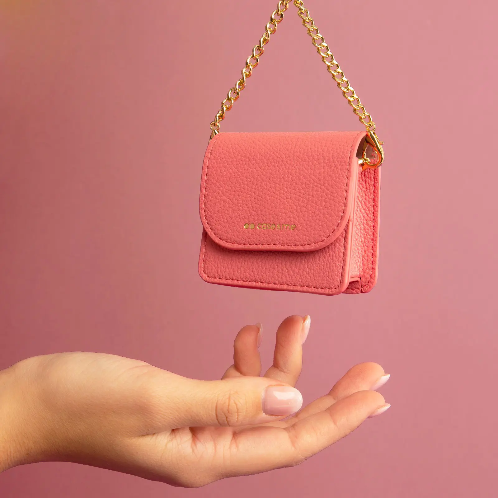 E' dotata di una catenina dorata con un gancetto all'estremità. Questa caratteristica offre una comodità ulteriore: potrai applicarla ad uno zainetto, al passante della cintura o ad una borsa in totale tranquillità.