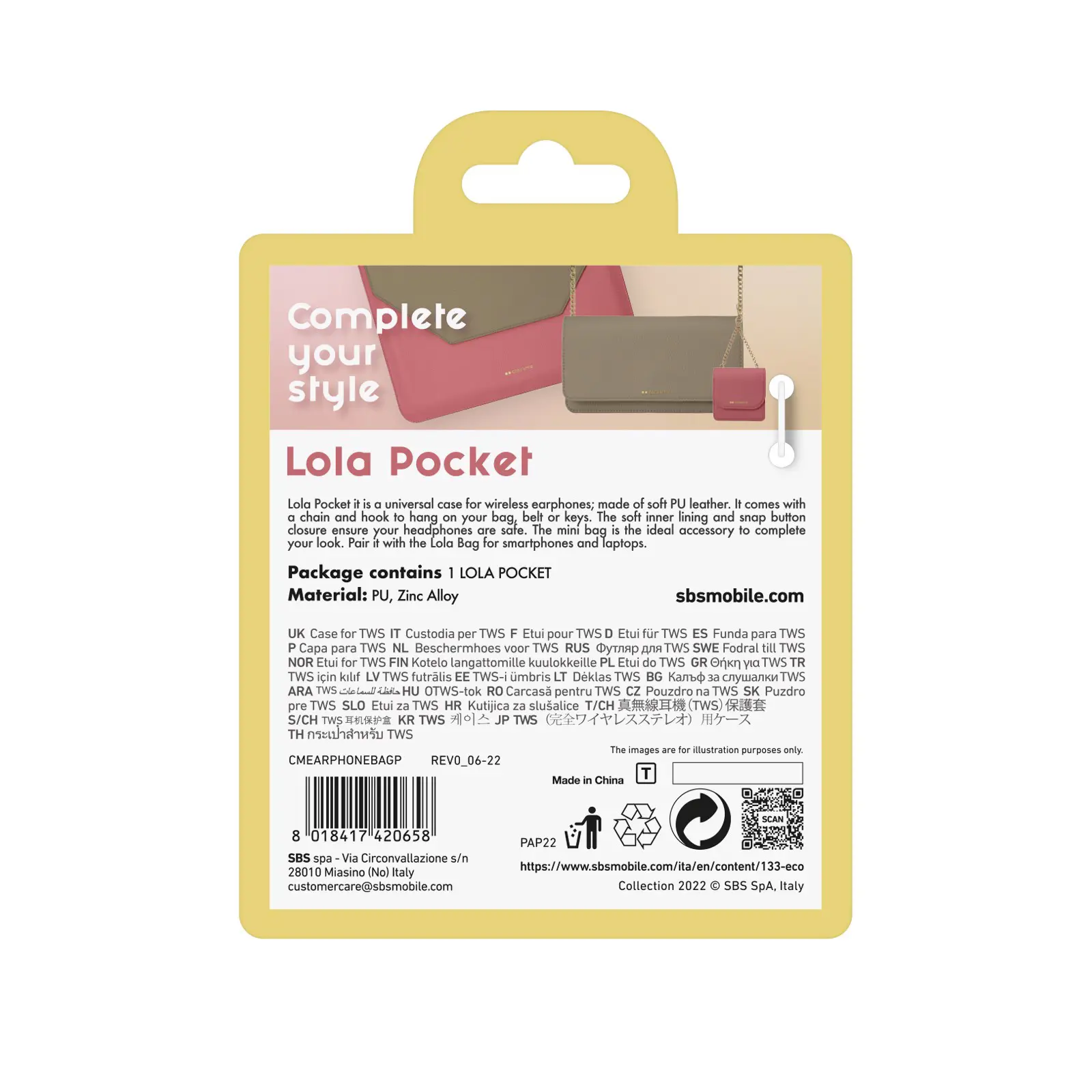 Questa borsetta è stata pensata per proteggere e trasportare i tuoi auricolari TWS o a filo con stile. Apri lo sportellino con chiusura a bottone e riponili nella pratica tasca. Potrai usarla anche per portare con te piccoli oggetti come delle monete, un cavetto o una chiavetta USB.