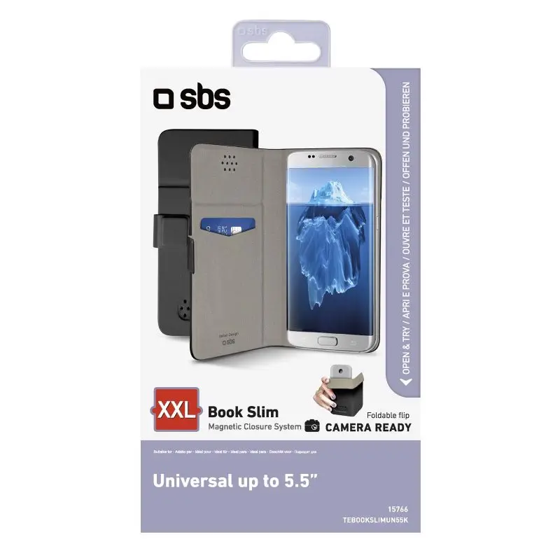 SBS Custodia BookSlim Universale per smartphone fino a 5,5'', Custodia a libro, Ogni marca, 14 cm (5.5"), Nero