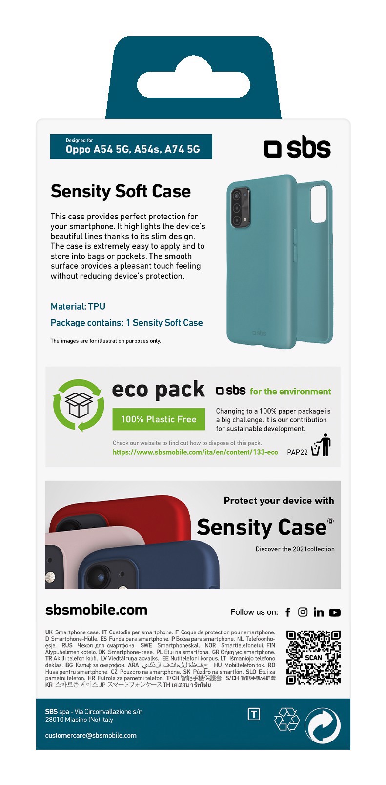 Questa custodia protegge perfettamente la scocca del modello Oppo A54 5G/A54s/A74 5G, evidenziandone la bontà delle linee grazie al suo fine design.