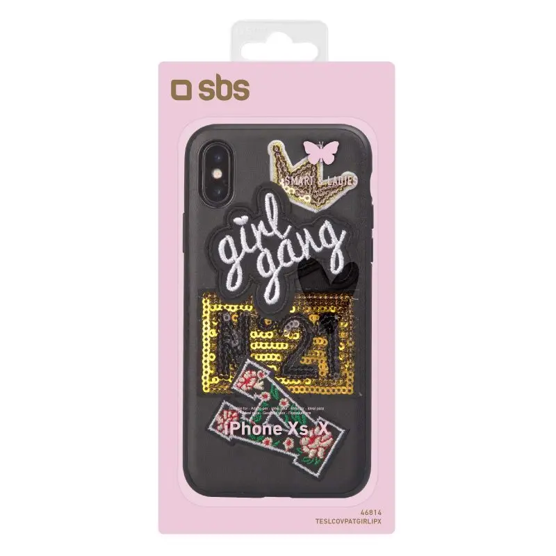 SBS Cover con patch Girl Gang per iPhone XS/X, Cover, Apple, iPhone XS/X, 14,7 cm (5.8"), Nero