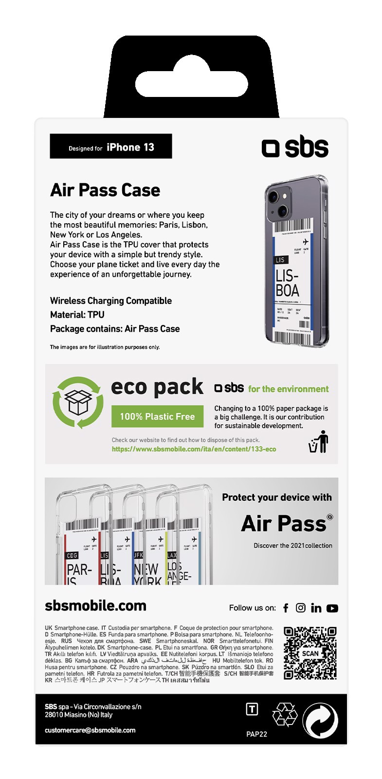 SBS TETICKETIP13LIS custodia per cellulare 15,5 cm (6.1") Cover Nero, Blu, Trasparente, Bianco