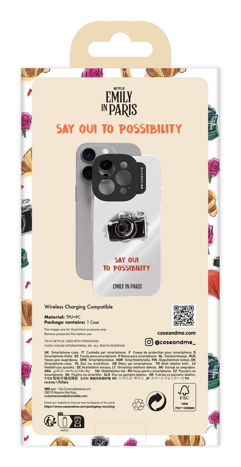 Personalizza il tuo iPhone 16 Pro Max con una cover caratterizzata da scritte e immagini della serie TV Emily in Paris. Questa cover