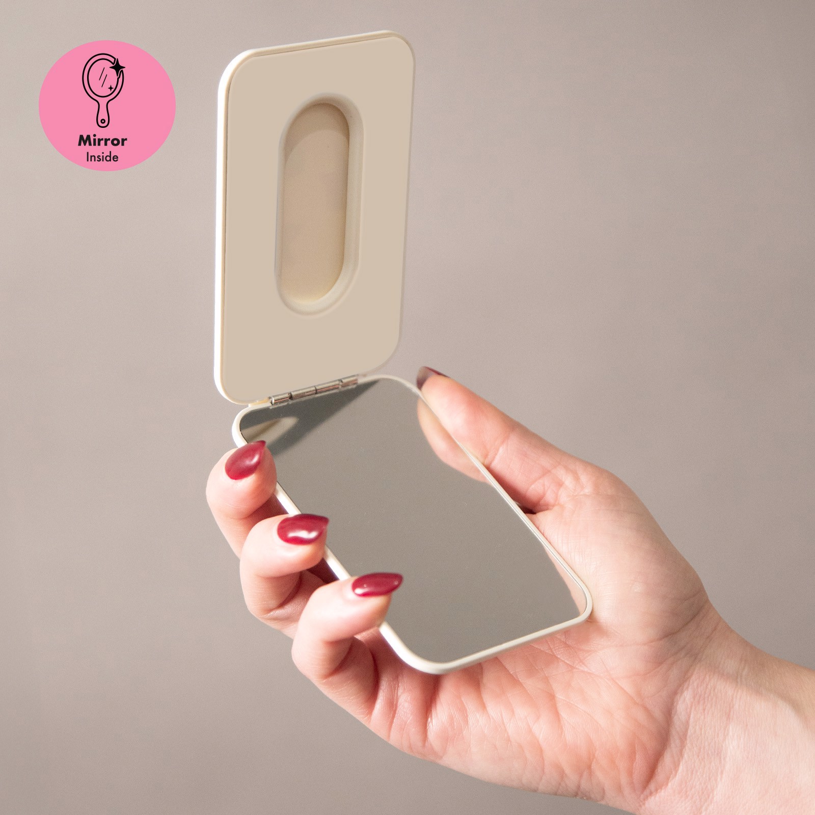 Un accessorio che unisce praticità e stile: il suo design compatto e sottile lo rende perfetto da tenere in borsa, nello zaino o persino in tasca. Quando non lo usi, si richiude come un elegante specchietto da portare ovunque.