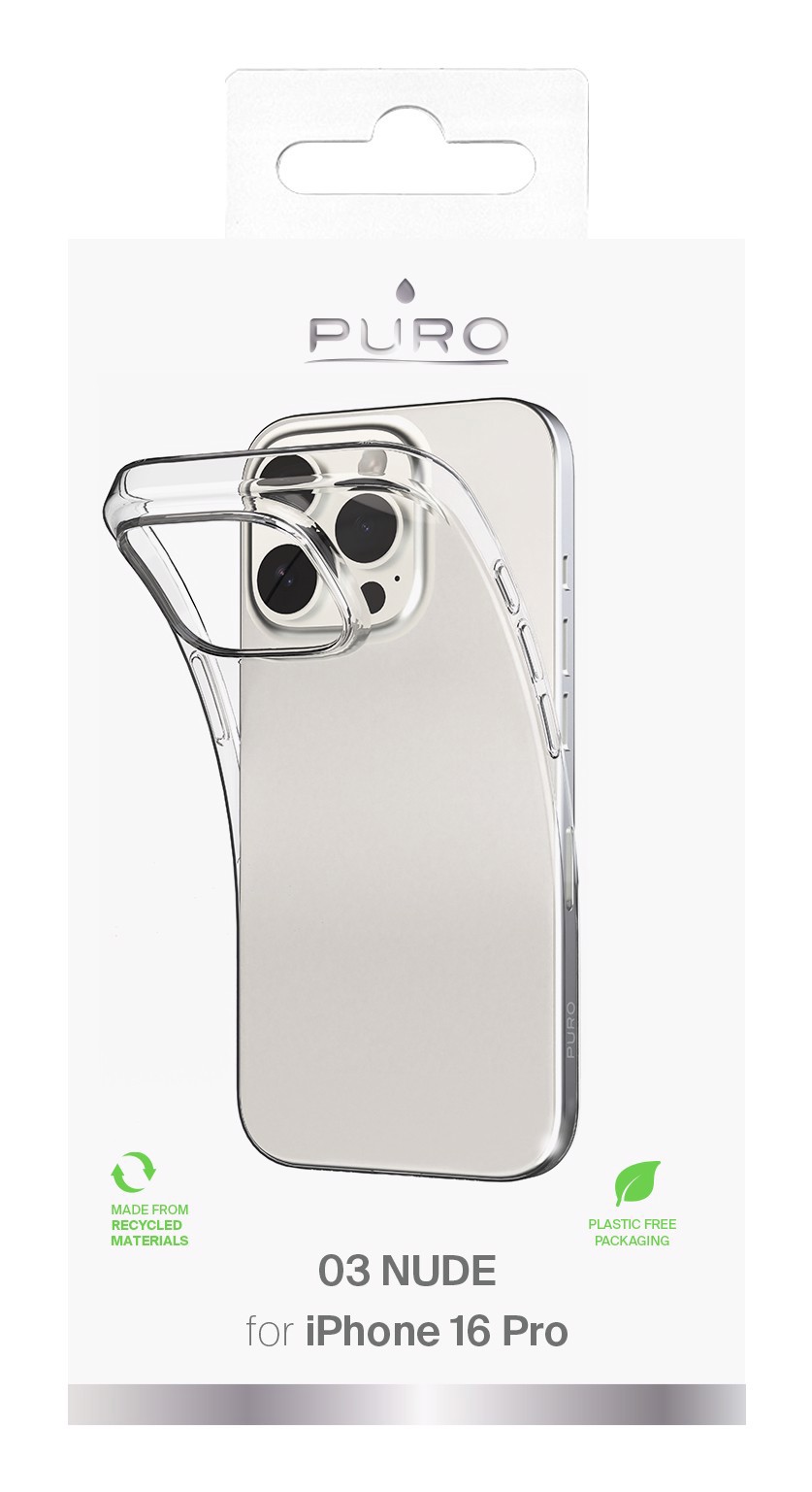 Scegli la cover 03 Nude per iPhone 16 Pro di Puro se vuoi una protezione trasparente, flessibile e sottile.