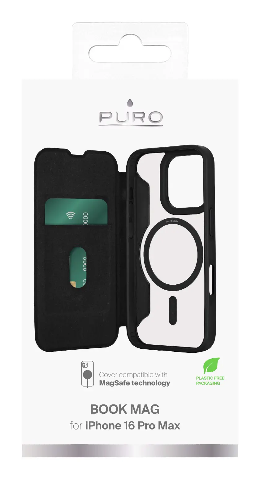 PURO Book Mag 2, Custodia a libro, Apple, iPhone 16 Pro Max, 17,5 cm (6.9"), Nero, Trasparente