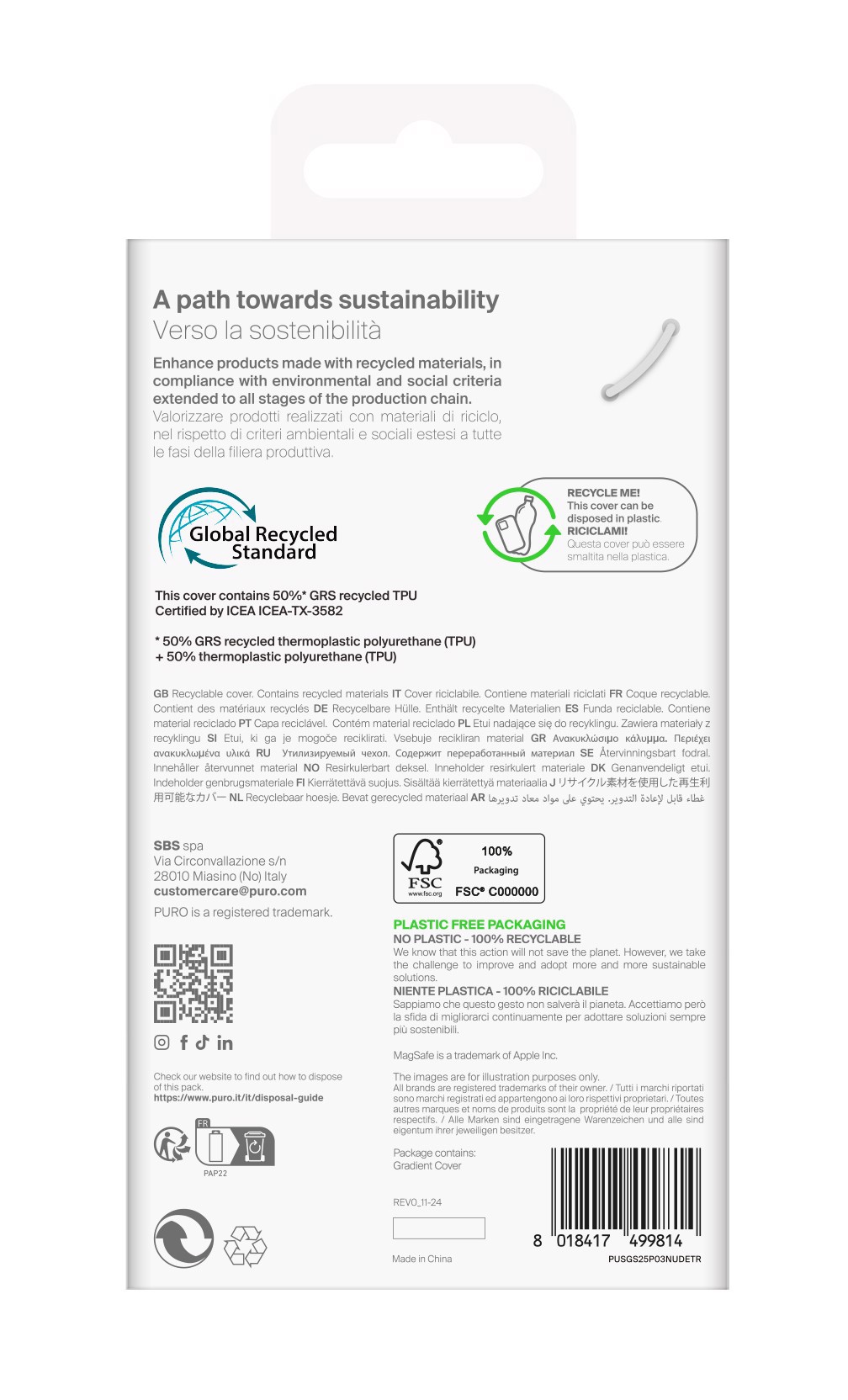 2. Impegno per l'ambiente: la Cover 03 Nude è realizzata dal 50% di materiale riciclato e ha ottenuto la certificazione GRS. Acquistando questa cover, oltre a proteggere il tuo Samsung Galaxy S25+, contribuirai attivamente alla salvaguardia dell'ambiente.