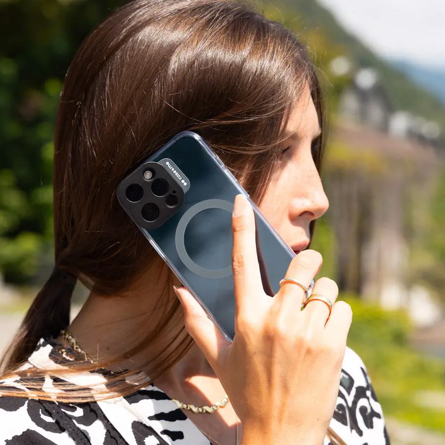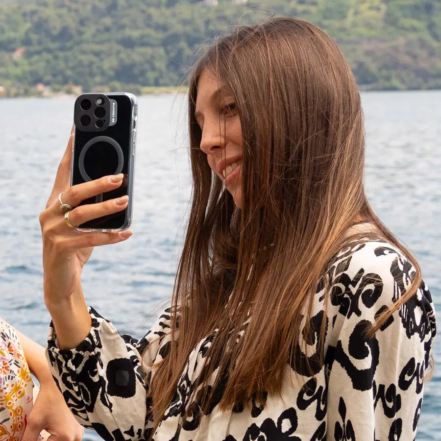 La MagColor è una cover resistente che protegge il tuo iPhone 15 Pro Max da urti e graffi. La scocca rigida nera protegge la fotocamera senza ostruirla: scatta selfie e crea video in totale serenità. Sui lati, la cover copre i tasti laterali permettendone, comunque, l'uso.