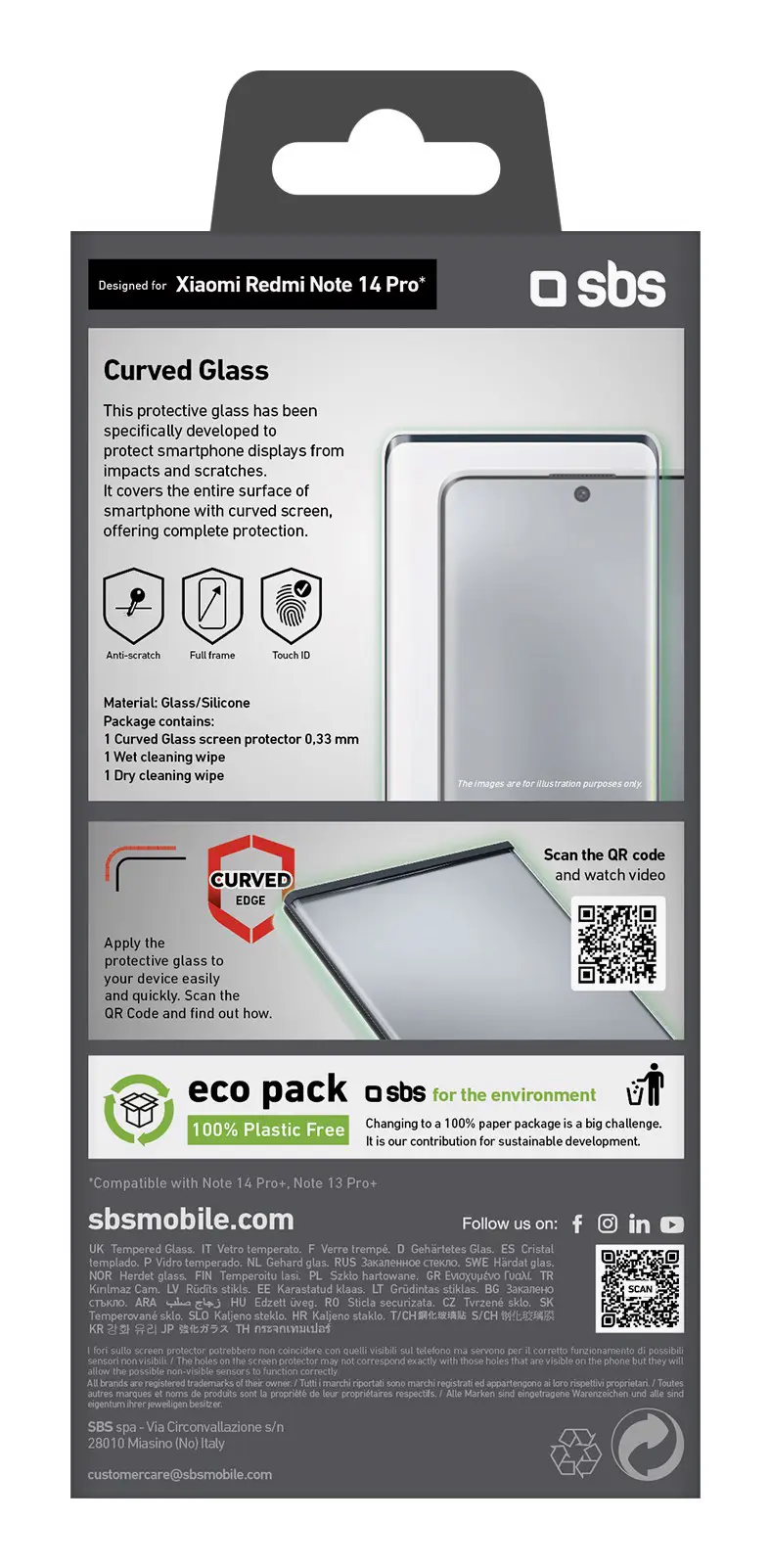 Questa particolare pellicola protettiva, realizzata in vetro temperato, garantisce una protezione dagli urti e dai gra. Aderisce perfettamente al display del tuo Xiaomi Redmi Note 14 Pro/Note 13 Pro+/Note 14 Pro+ 5G lasciando liberi gli spazi per la fotocamera, il microfono e i sensori. È stata elaborata specicatamente per assorbire gli impatti, in modo da assicurare un display sempre perfetto.