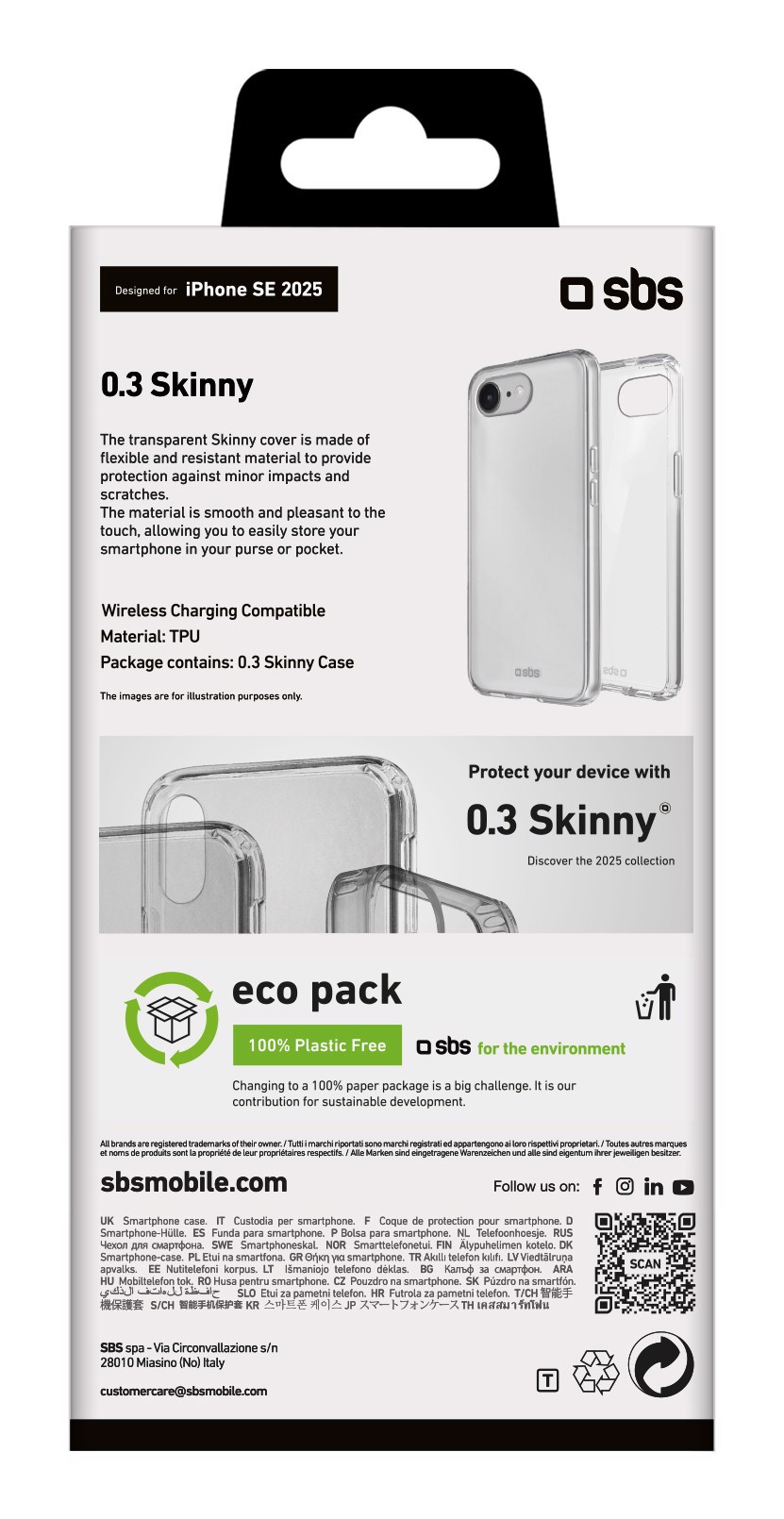 La cover Skinny per iPhone 16E è realizzata in materiale essibile e resistente per consentire una protezione da piccoli urti e gra. Avvolge perfettamente i tasti di accensione e del volume del tuo smartphone senza appesantirne il prolo.