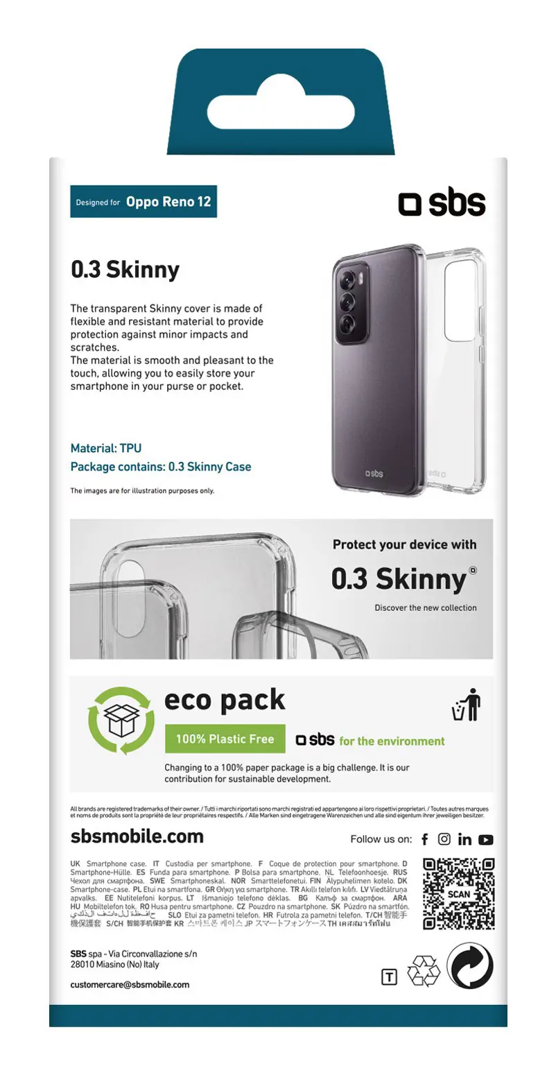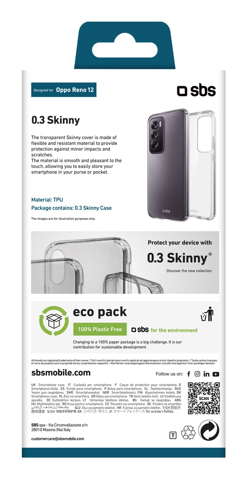 La cover Skinny per Oppo Reno 12 è realizzata in materiale flessibile e resistente per consentire una protezione da piccoli urti e graffi.