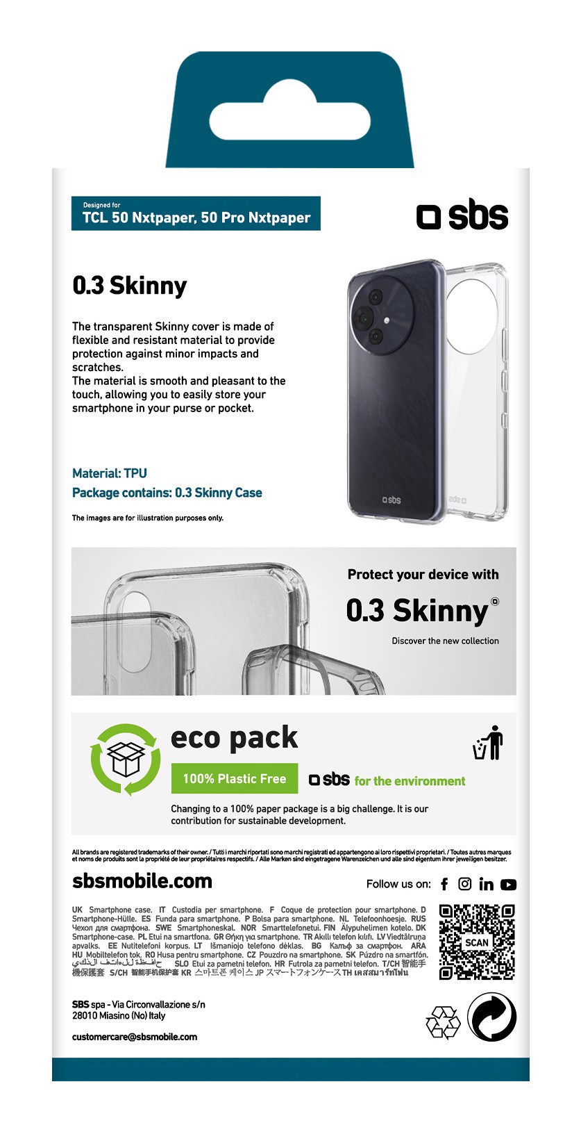 La cover Skinny per TCL TCL 50 Nxtpaper/50 Pro Nxtpaper è realizzata in materiale flessibile e resistente per consentire una protezione da piccoli urti e graffi.