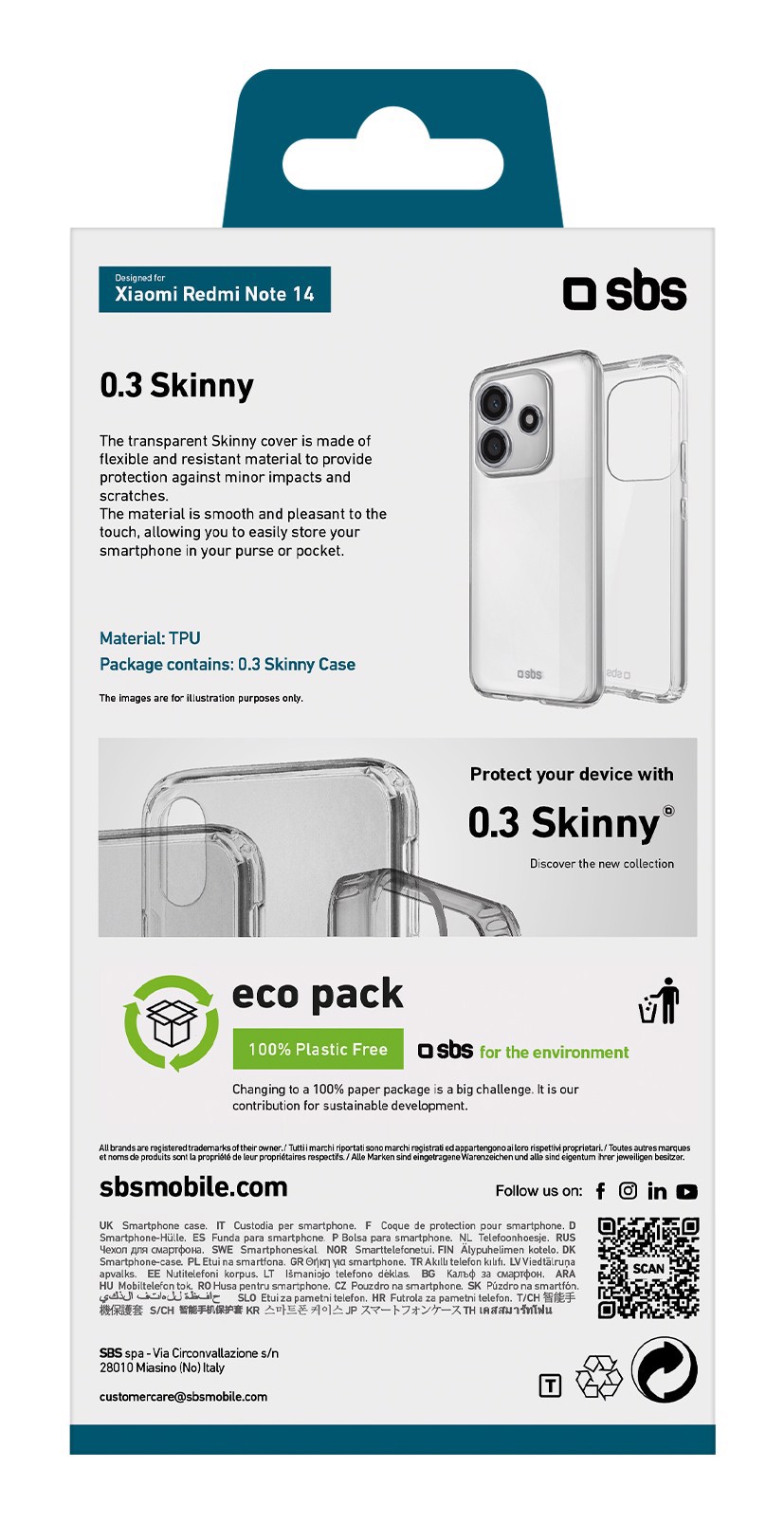 La cover Skinny per Xiaomi Redmi Note 14 5G è realizzata in materiale essibile e resistente per consentire una protezione da piccoli urti e gra.