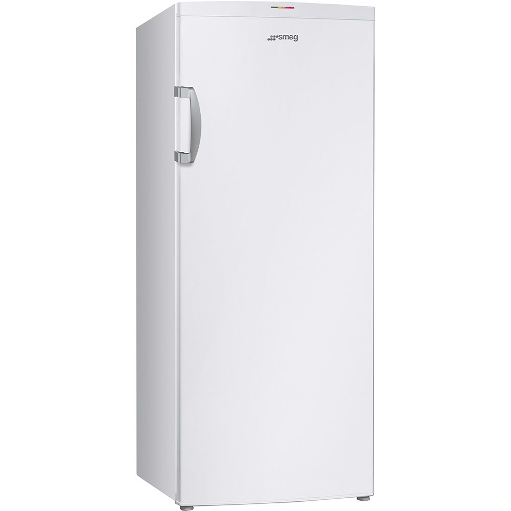 Smeg CV275NF. Tipo: Verticale. Capacità netta congelatore: 214 L, Classe climatica: SN-T, Capacità di congelamento: 16 kg/24h, Autonomia senza energia elettrica: 18 h, Emissione acustica: 39 dB, Punteggio: 4*, Sistema No-frost. Cerniera porta: Destra. Classe efficienza energetica: F, Consumo energetico annuo: 281 kWh. Colore del prodotto: Bianco