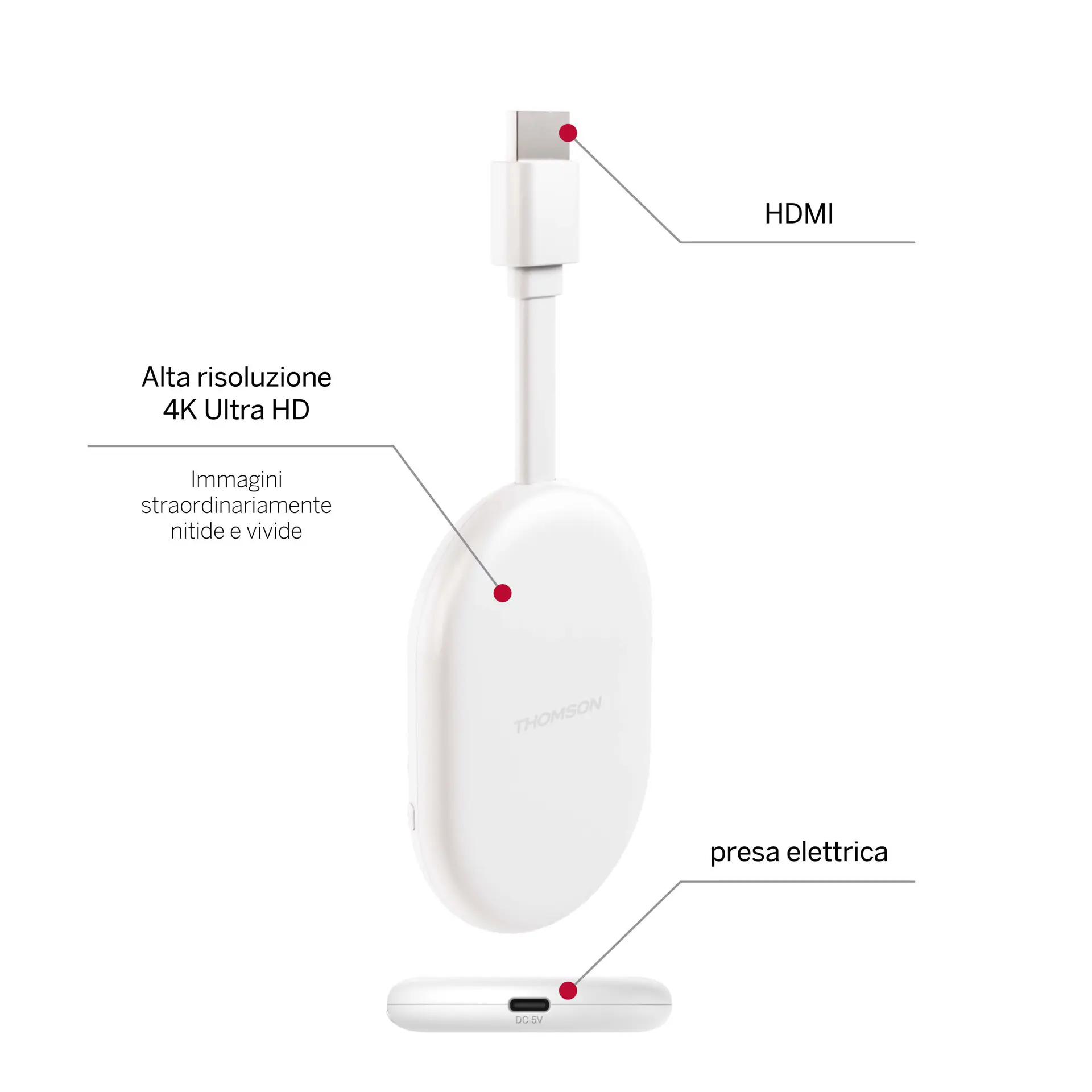 Intrattenimento intelligente semplificato. Thomson 150 Go Cast offre l'esperienza completa di Google TV su qualsiasi televisore dotato di porta HDMI. Compatto, portatile e facile da configurare, è la soluzione ideale per trasformare qualsiasi schermo in un hub di streaming completamente connesso, a casa o in viaggio.