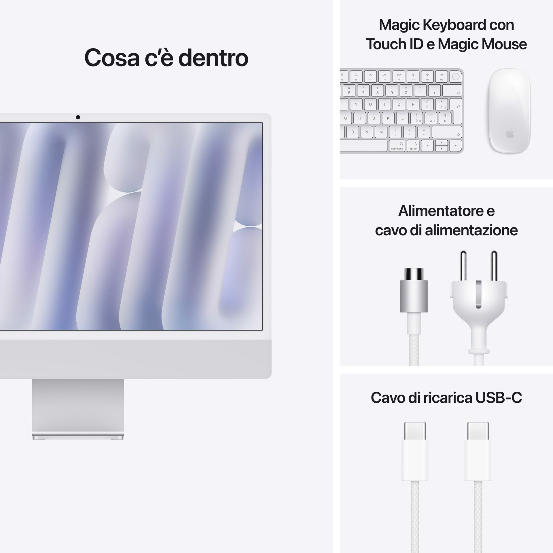 | Software pre-installato | App Store, Books, Calendar, Contacts, FaceTime, Find My, Freeform, GarageBand, Home, iMovie, iPhone Mirroring, Keynote, Mail, Maps, Messages, Music, News, Notes, Numbers, Pages, Photo Booth, Photos, Podcasts, Preview, QuickTime Player, Reminders, Safari, Shortcuts, Stocks, Time Machine, TV, Voice Memos, Weather |