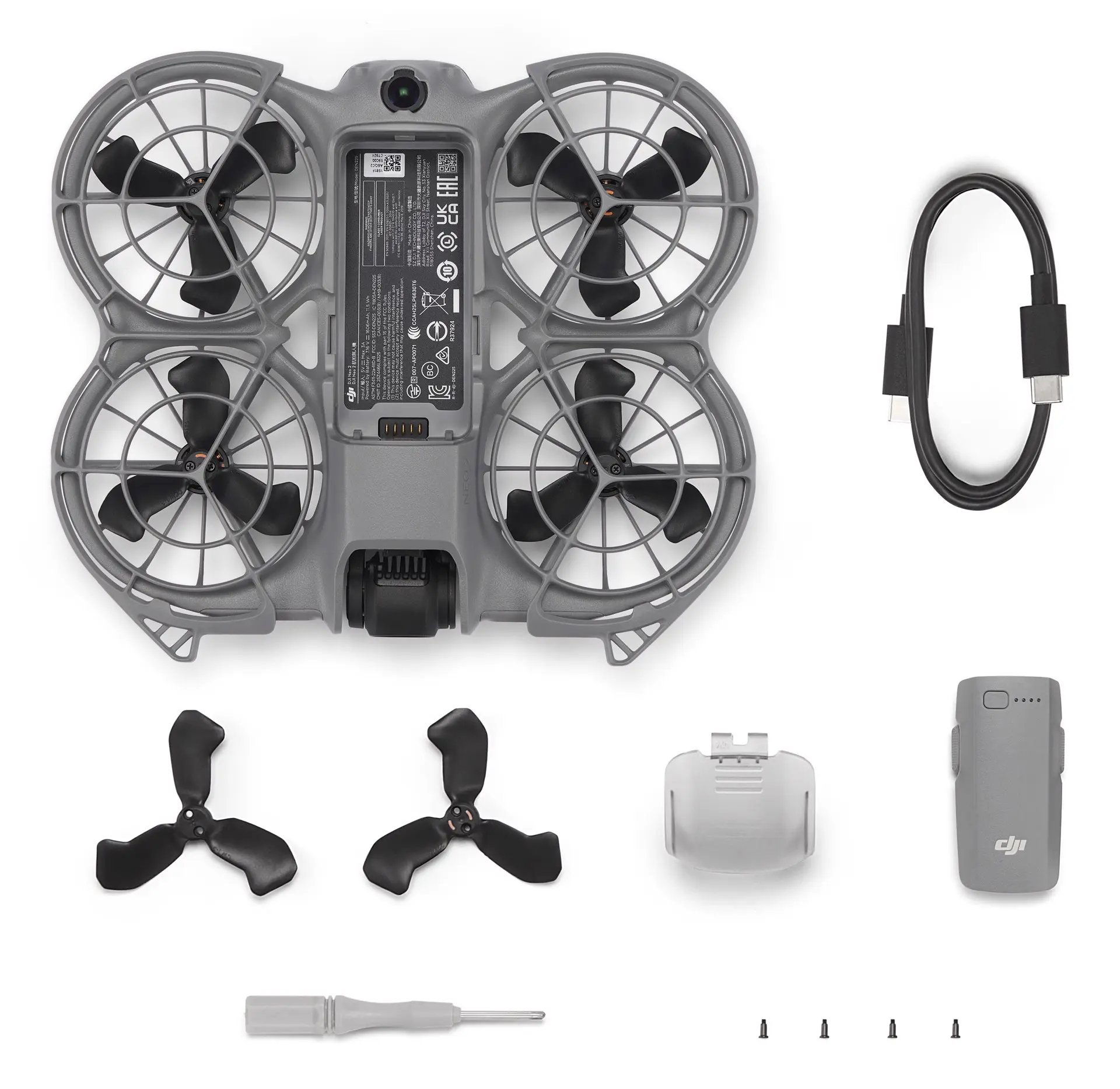 DJI Neo 2. Numero di rotori: 4 rotori. Megapixel: 12 MP, Risoluzione massima video: 2688 x 1512 Pixel. Massima distanza di funzionamento: 7000 m. Tecnologia batteria: Ioni di Litio, Capacità della batteria: 1606 mAh. RAM installata: 49 GB. Wi-Fi, Standard Wi-Fi: 802.11a, 802.11b, 802.11g, Wi-Fi 4 (802.11n), Wi-Fi 5 (802.11ac), Wi-Fi 6 (802.11ax), Bluetooth, Versione Bluetooth: 5.2. Colore del prodotto: Nero, Grigio