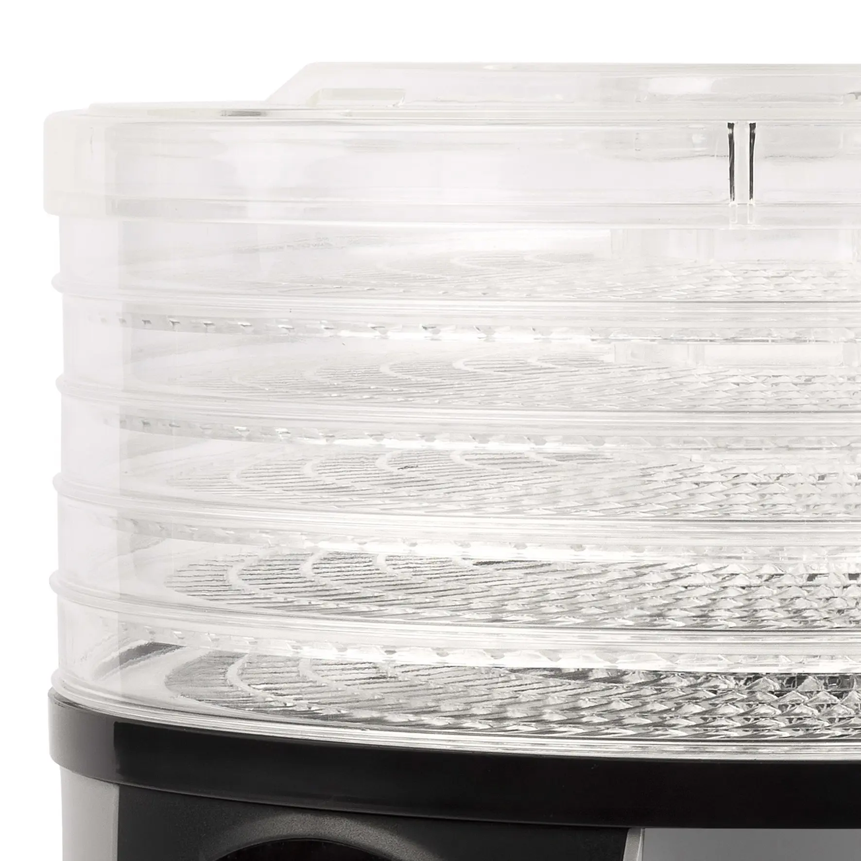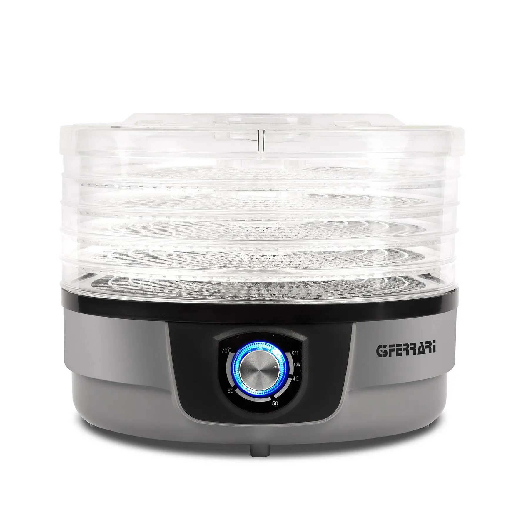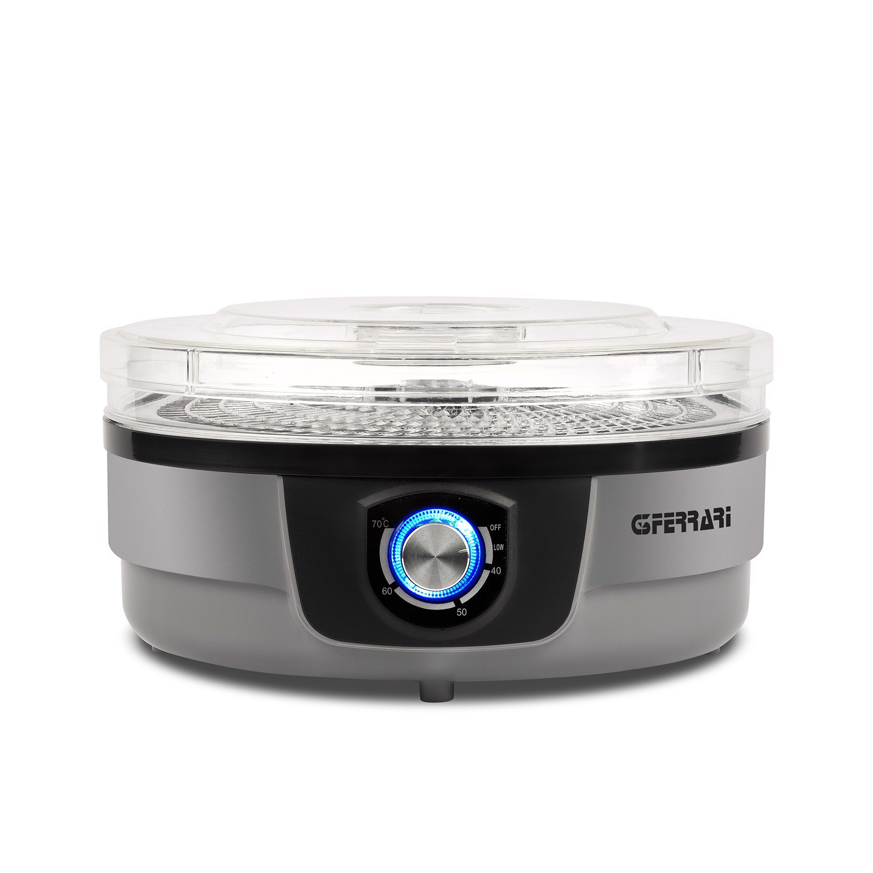 Dotato di 5 vassoi spaziosi con diametro di 32 cm ciascuno e di coperchio trasparente, permette di collocare una grande quantità di alimenti. La sua caratteristica distintiva è l'innovativo sistema di vassoi rotanti, che assicura un'essiccazione uniforme dei tuoi cibi preferiti. La regolazione della temperatura da 40°C a 70°C permette di essiccare al meglio ogni tipo di alimento, e la ventola integrata migliora l'efficienza, assicurando un flusso regolare del calore per risultati perfetti ogni volta. I vassoi BPA free sono sicuri per il contatto prolungato con gli alimenti.