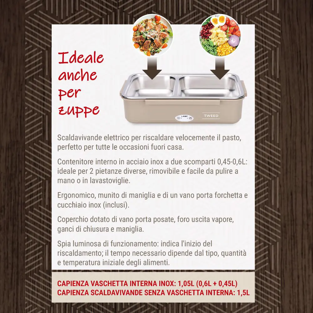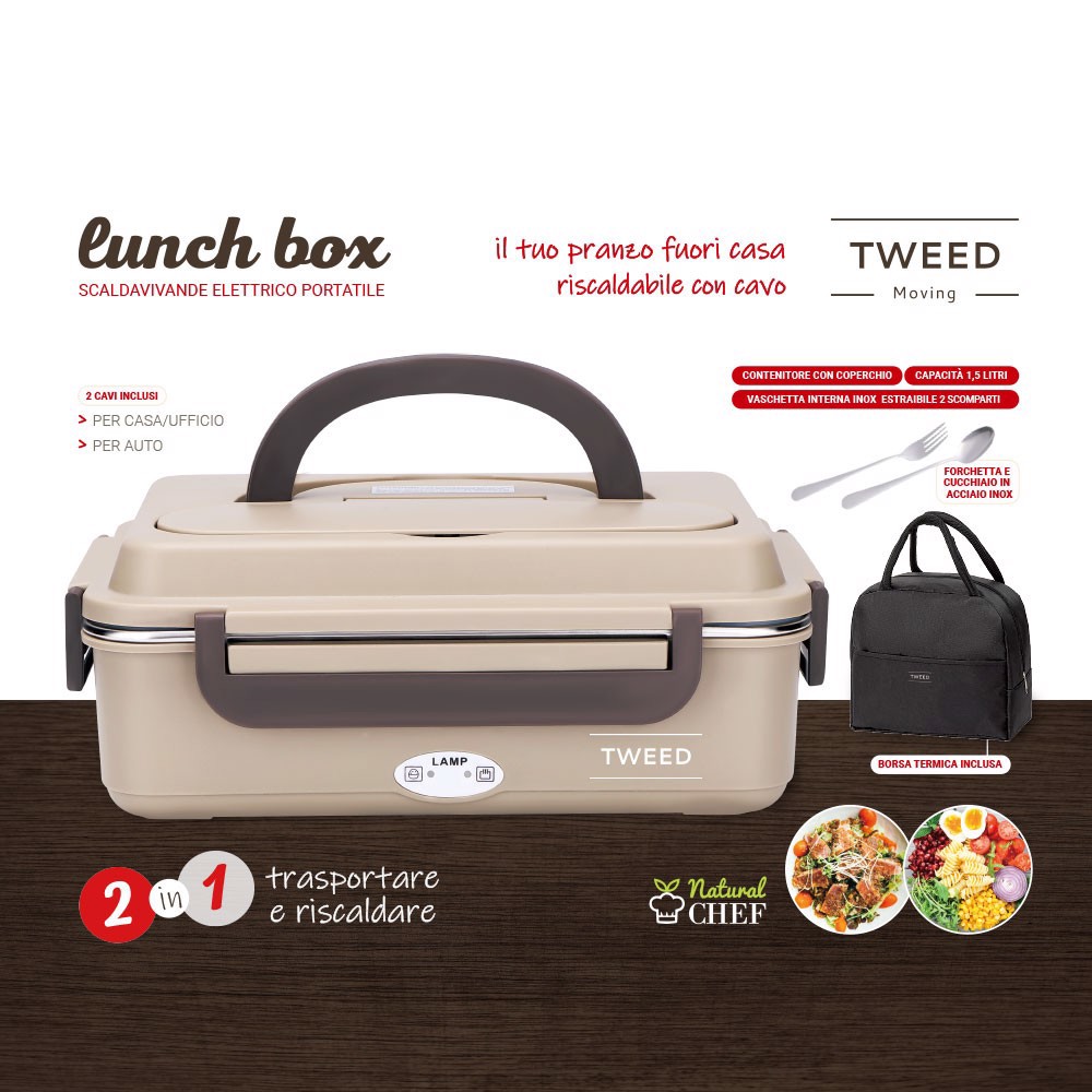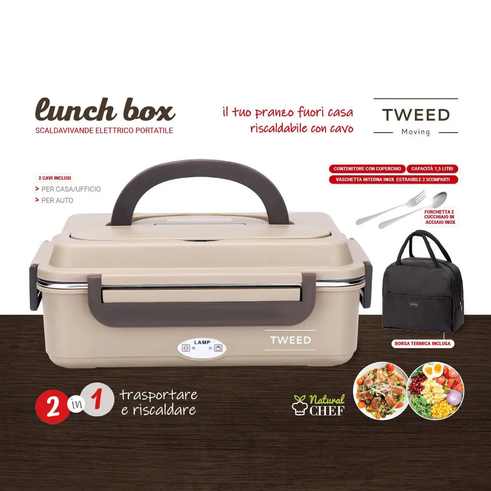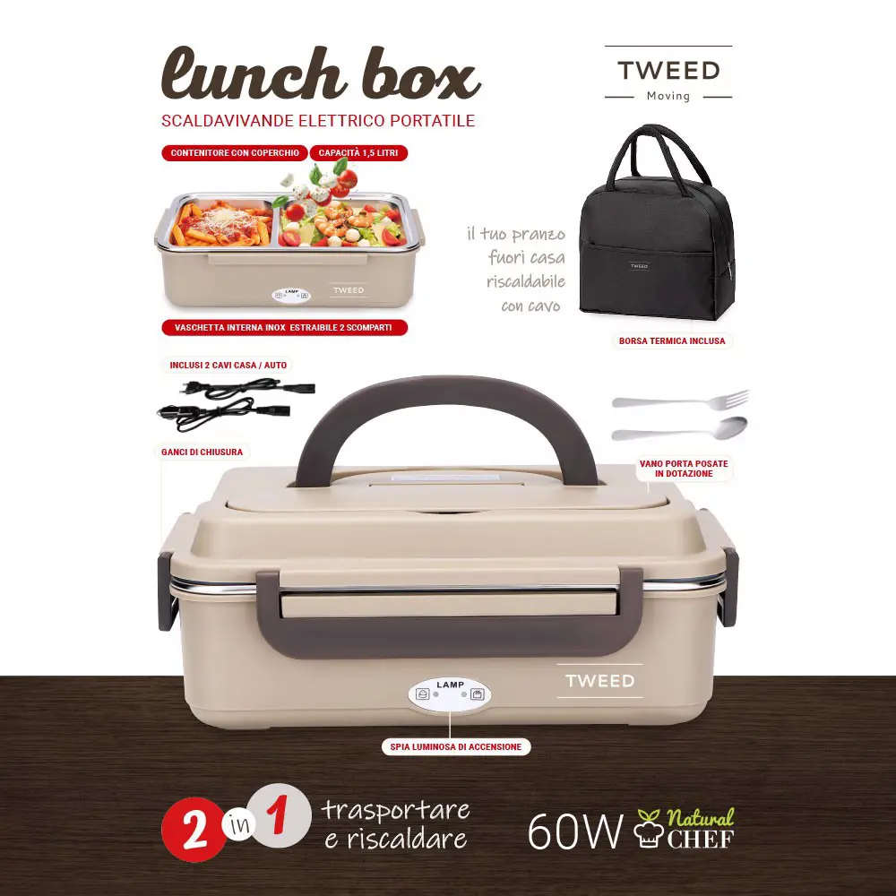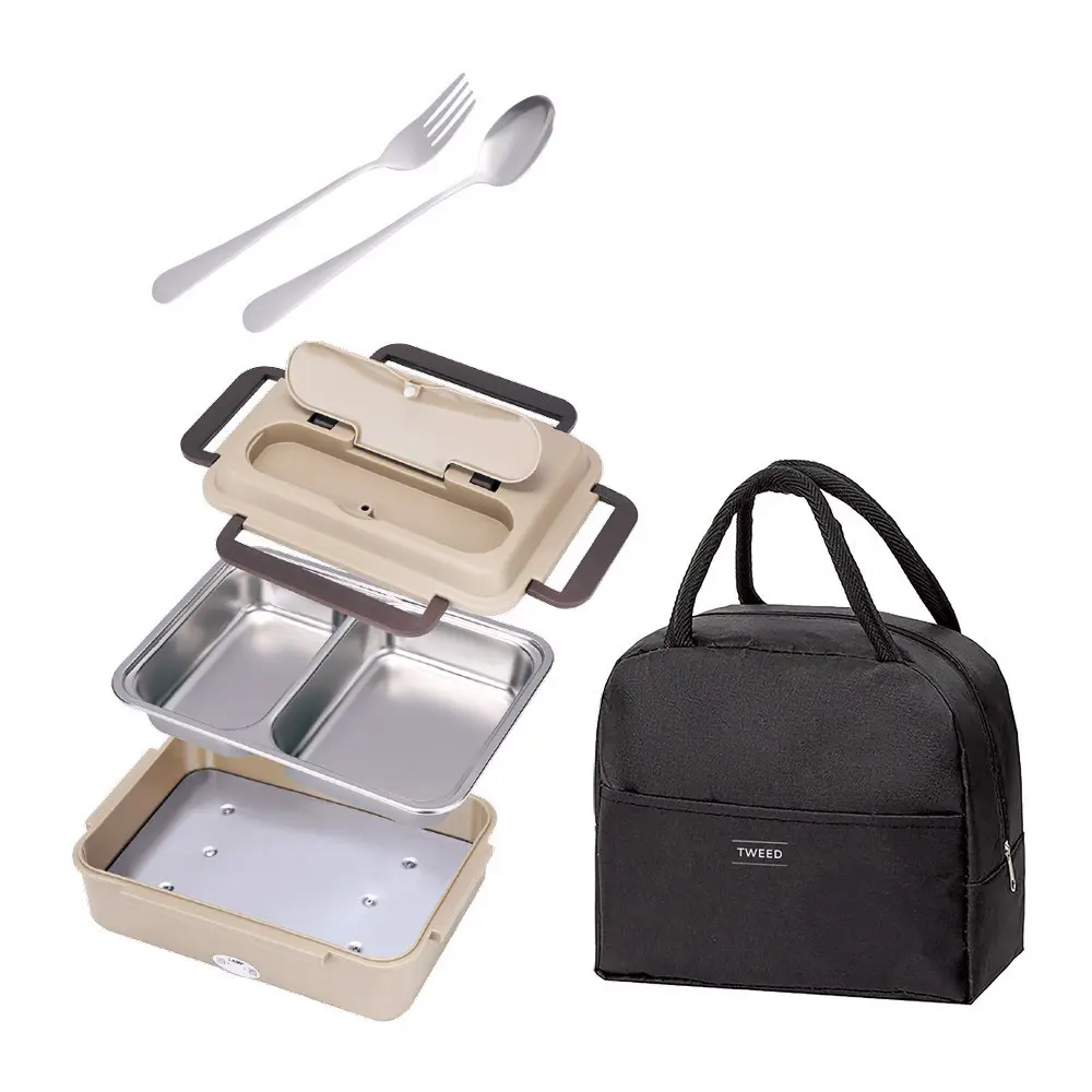 XD Enjoy LUNCH BOX scaldavivande elettrico portatile con borsa e posate, 1,05 L, Marrone, Adulto/Bambino, Nocciola/Marrone, Rettangolare, Polipropilene (PP)