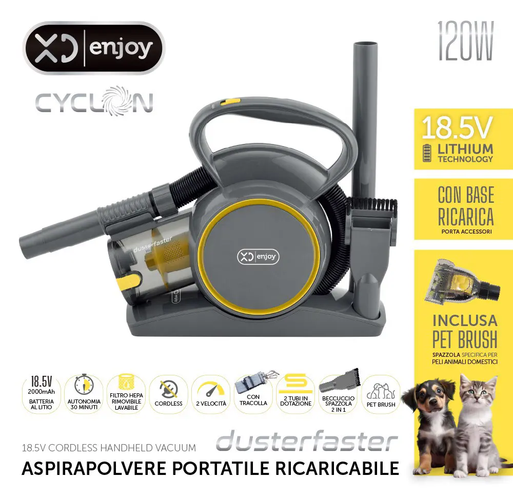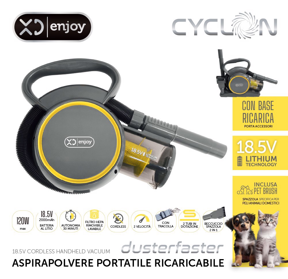 XD Enjoy XDNY299 aspirapolvere senza filo Grigio, Giallo Senza sacchetto