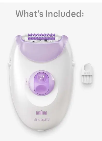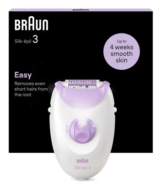 Braun Silk-épil 3 3-000. Colore del prodotto: Viola, Bianco, Numero di pinzette: 20 pinzette, Tecnologia pinzette: MicroGrip. Alimentazione: AC, Tensione di ingresso AC: 100 - 240 V, Frequenza di ingresso AC: 50 - 60 Hz. Larghezza: 104 mm, Profondità: 37 mm, Altezza: 71 mm. Tipo di imballo: Scatola. Quantità per pacco: 1 pz