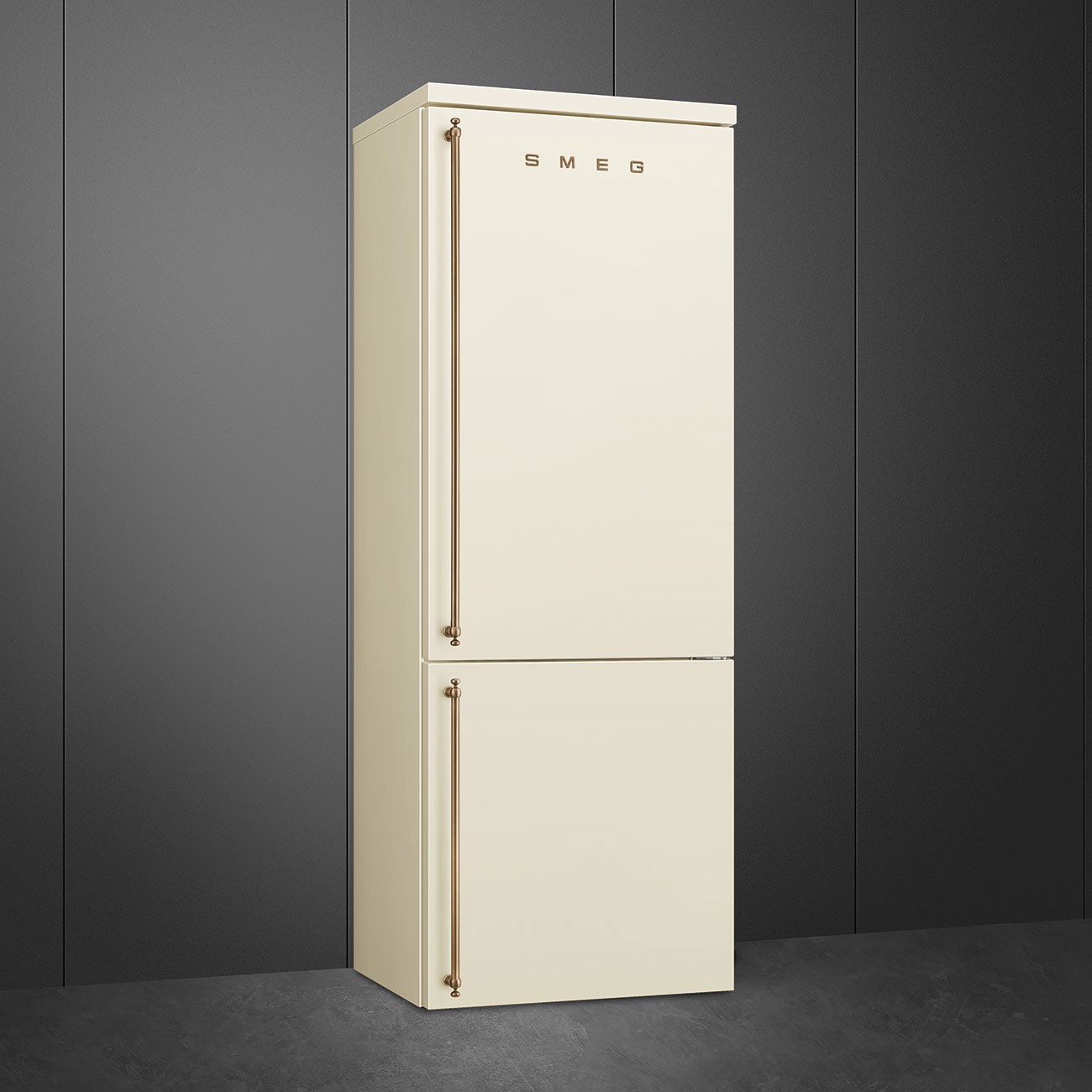 Smeg FA8005RPO5. Capacità netta totale: 481 L. Cerniera porta: Destra, Tipo di display: LED. Classe climatica: SN-T, Emissione acustica: 41 dB. Capacità netta frigorifero: 344 L, No Frost (frigorifero), Sistema Multi-Airflow (frigorifero), Luce interna. Capacità netta congelatore: 137 L, Capacità di congelamento: 8 kg/24h, No Frost (congelatore). Compartimento zona fresca. Classe efficienza energetica: E, Consumo energetico annuo: 285 kWh