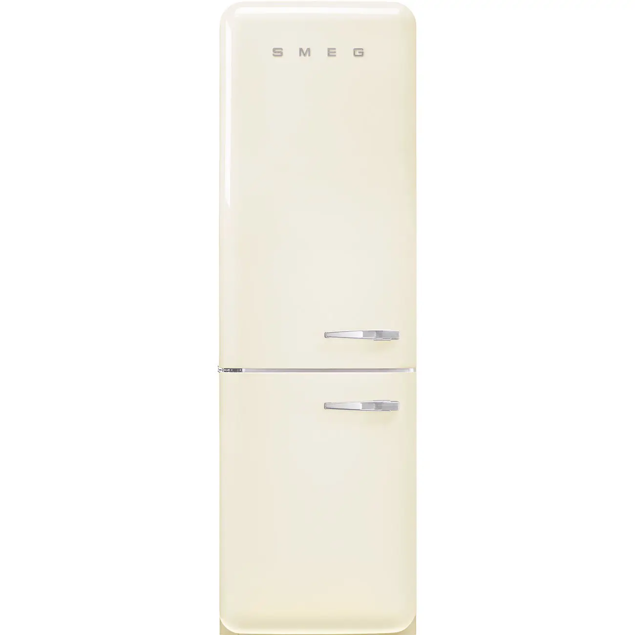 Smeg FAB32LCR5. Capacità netta totale: 331 L. Cerniera porta: Sinistra, Tipo di display: LED. Classe climatica: ST-T, Emissione acustica: 37 dB. Capacità netta frigorifero: 204 L, No Frost (frigorifero), Sistema Multi-Airflow (frigorifero), Luce interna. Capacità netta congelatore: 97 L, Capacità di congelamento: 6 kg/24h, No Frost (congelatore). Classe efficienza energetica: D, Consumo energetico annuo: 178 kWh. Colore del prodotto: Crema