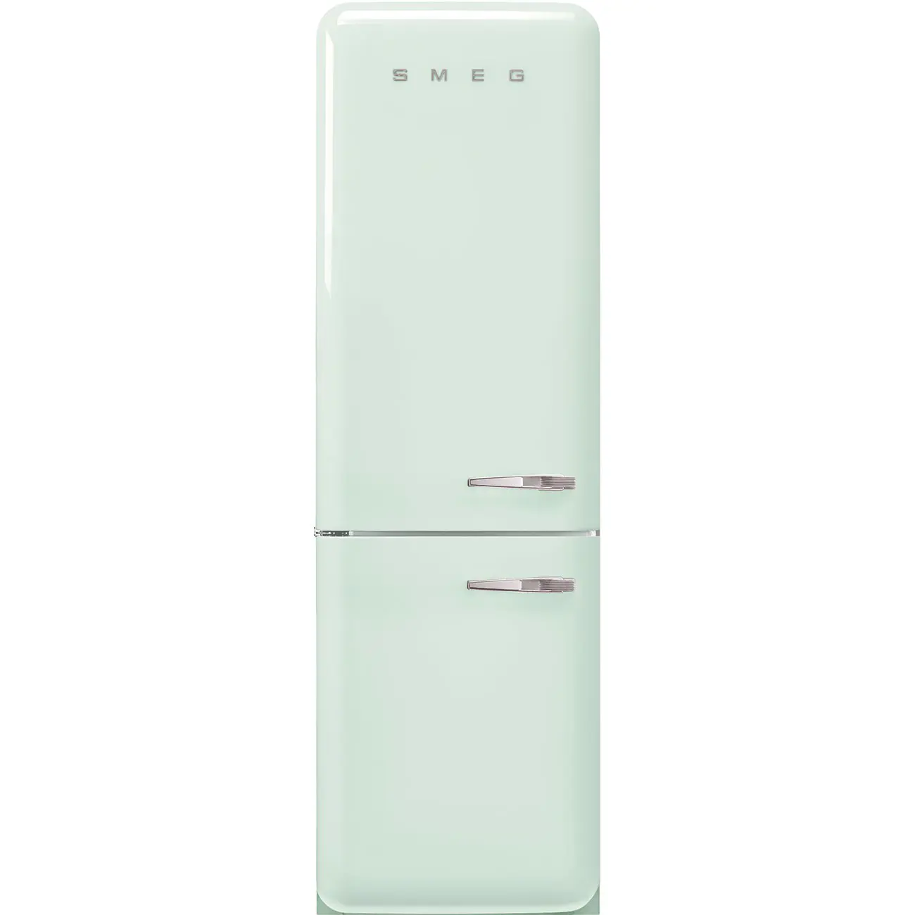 Smeg FAB32LPG5. Capacità netta totale: 331 L. Cerniera porta: Sinistra, Tipo di display: LED. Classe climatica: ST-T, Emissione acustica: 37 dB. Capacità netta frigorifero: 204 L, No Frost (frigorifero), Sistema Multi-Airflow (frigorifero), Luce interna. Capacità netta congelatore: 97 L, Capacità di congelamento: 6 kg/24h, No Frost (congelatore). Classe efficienza energetica: D, Consumo energetico annuo: 178 kWh. Colore del prodotto: Verde