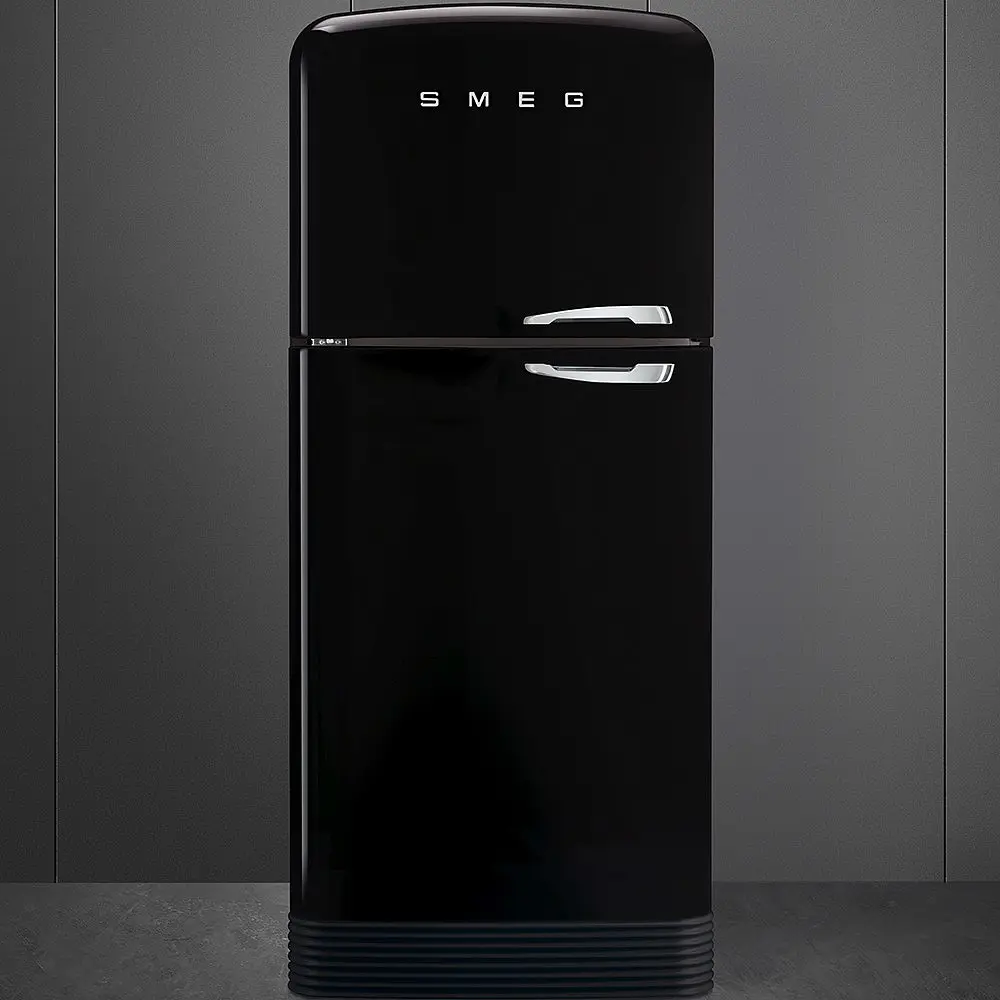 Smeg FAB50LBL5. Capacità netta totale: 524 L. Cerniera porta: Sinistra, Tipo di display: LED. Classe climatica: N-T, Emissione acustica: 41 dB. Capacità netta frigorifero: 400 L, No Frost (frigorifero), Sistema Multi-Airflow (frigorifero), Luce interna. Capacità netta congelatore: 124 L, Capacità di congelamento: 8 kg/24h, No Frost (congelatore). Compartimento zona fresca. Classe efficienza energetica: E, Consumo energetico annuo: 265 kWh