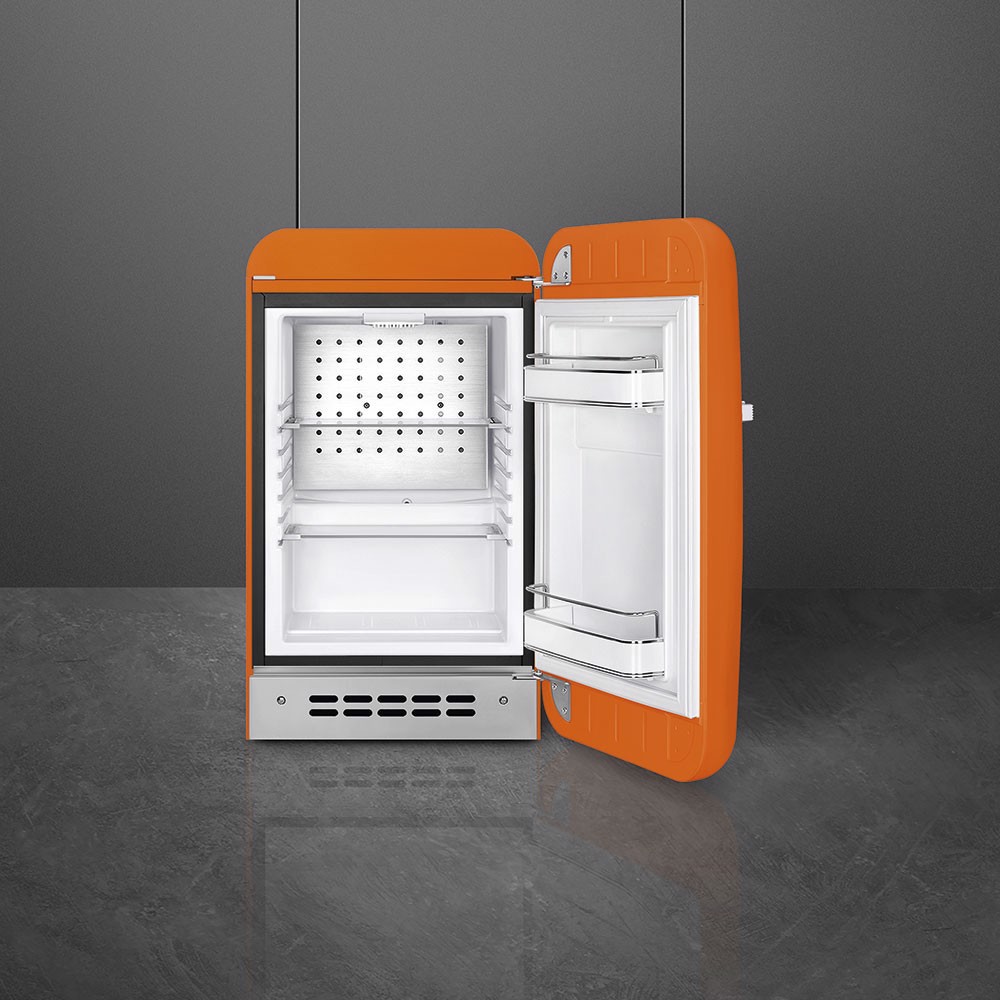 Le dimensioni contenute racchiudono tutte le caratteristiche di design e prestazioni che lo rendono ideale per caratterizzare le aree di hospitality. Grazie al peso ridotto non ci sono limiti alle molteplici possibilità di utilizzo e spostamento. Nella suite di un albergo, in ufficio o in negozio, il frigorifero FAB5 può diventare il complemento d’arredo che rende più accogliente e confortevole l’ambiente. Piccolo nelle dimensioni, grande nel carattere, il minibar Smeg è disponibile in diversi colori per inserirsi con armonia in contesti di stile diverso.