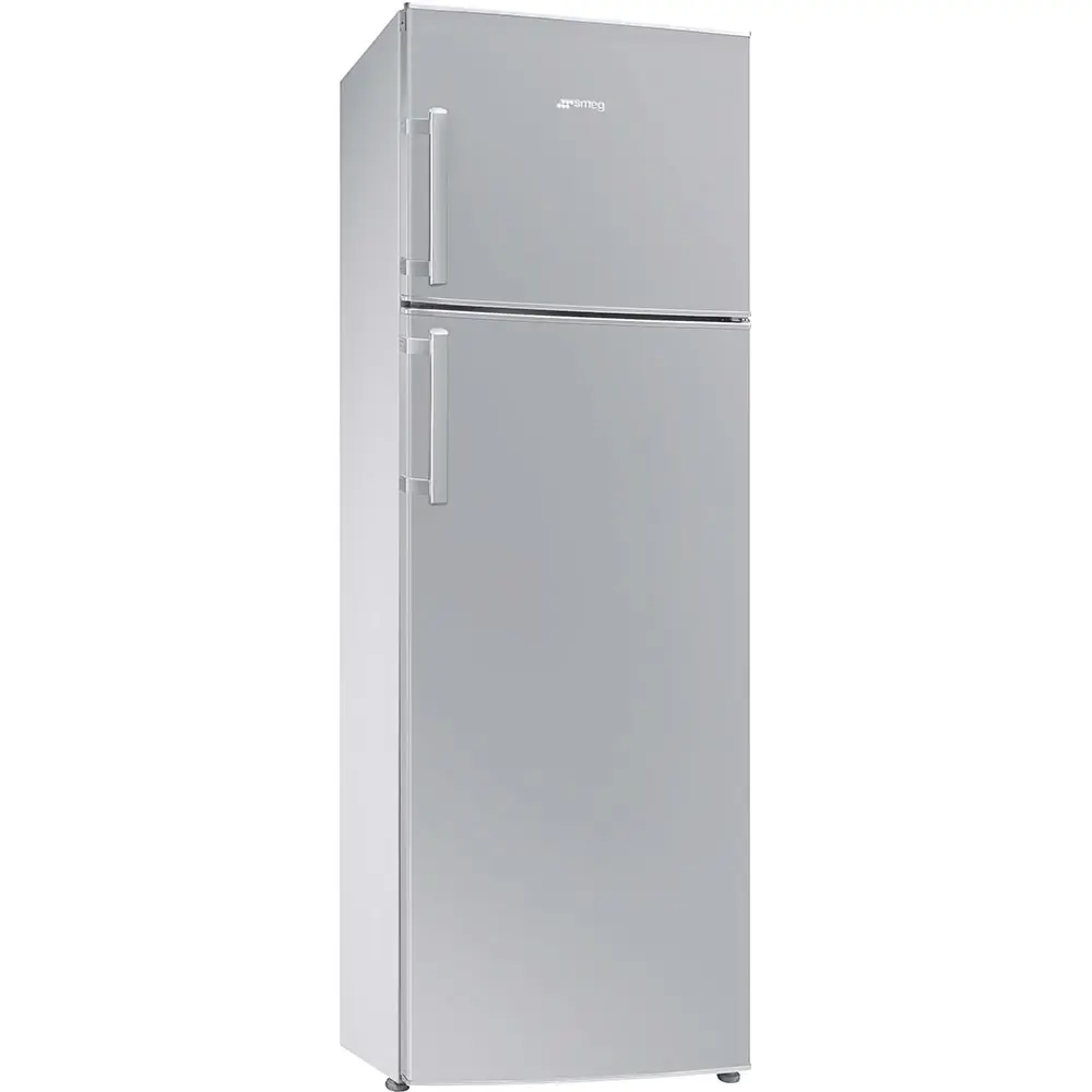 Smeg FD32FS. Capacità netta totale: 306 L. Cerniera porta: Destra. Classe climatica: SN-ST, Emissione acustica: 38 dB. Capacità netta frigorifero: 237 L, Luce interna, Numero di ripiani frigorifero: 4, Numero di cassetti per verdura: 1. Capacità netta congelatore: 69 L, Capacità di congelamento: 4 kg/24h. Classe efficienza energetica: F, Consumo energetico annuo: 265 kWh. Colore del prodotto: Argento