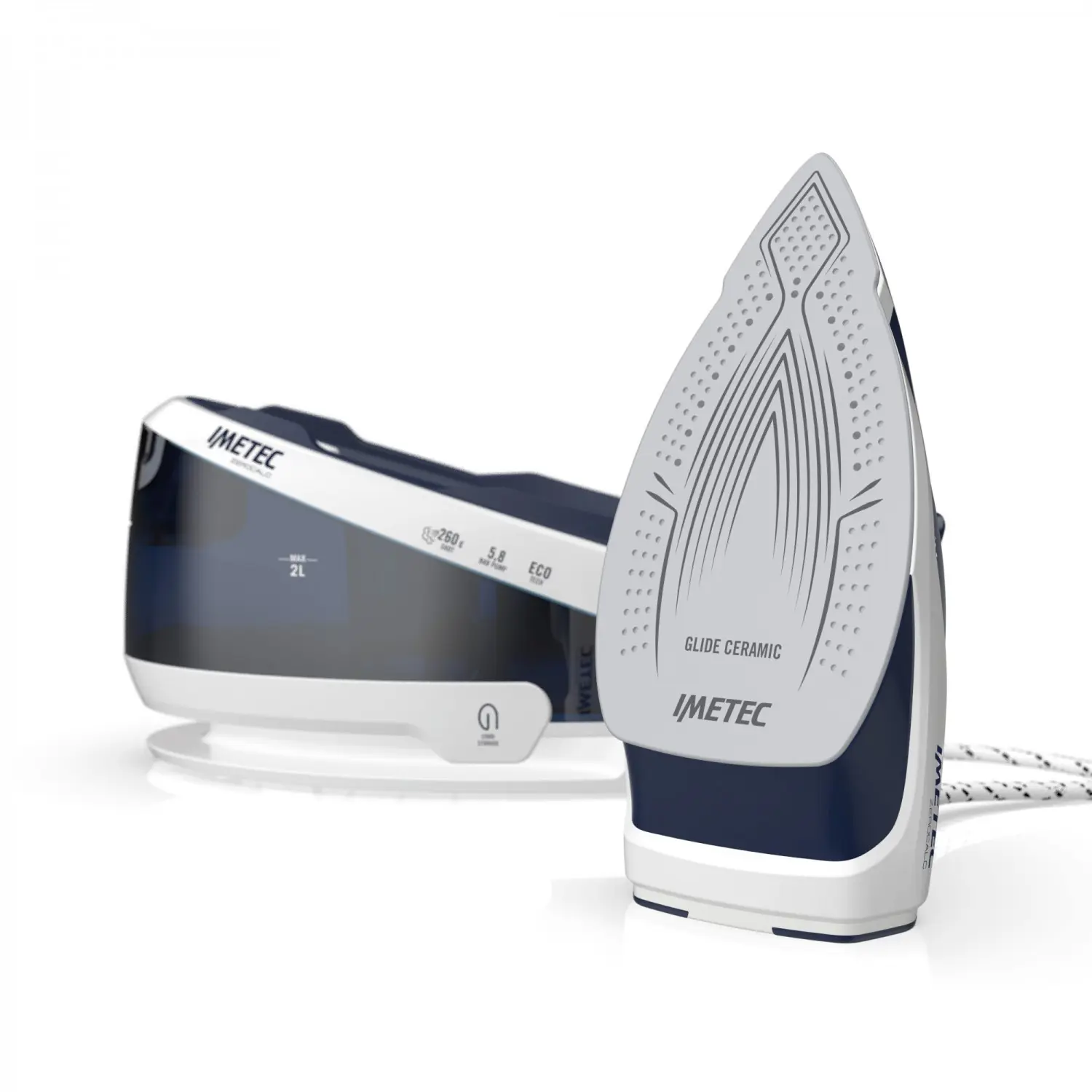 Il vapore è pronto in 1 minuto, lo rabbocchi senza attese anche durante la stiratura e con la tecnologia Imetec Eco riduce i consumi energetici fino al 35%*.