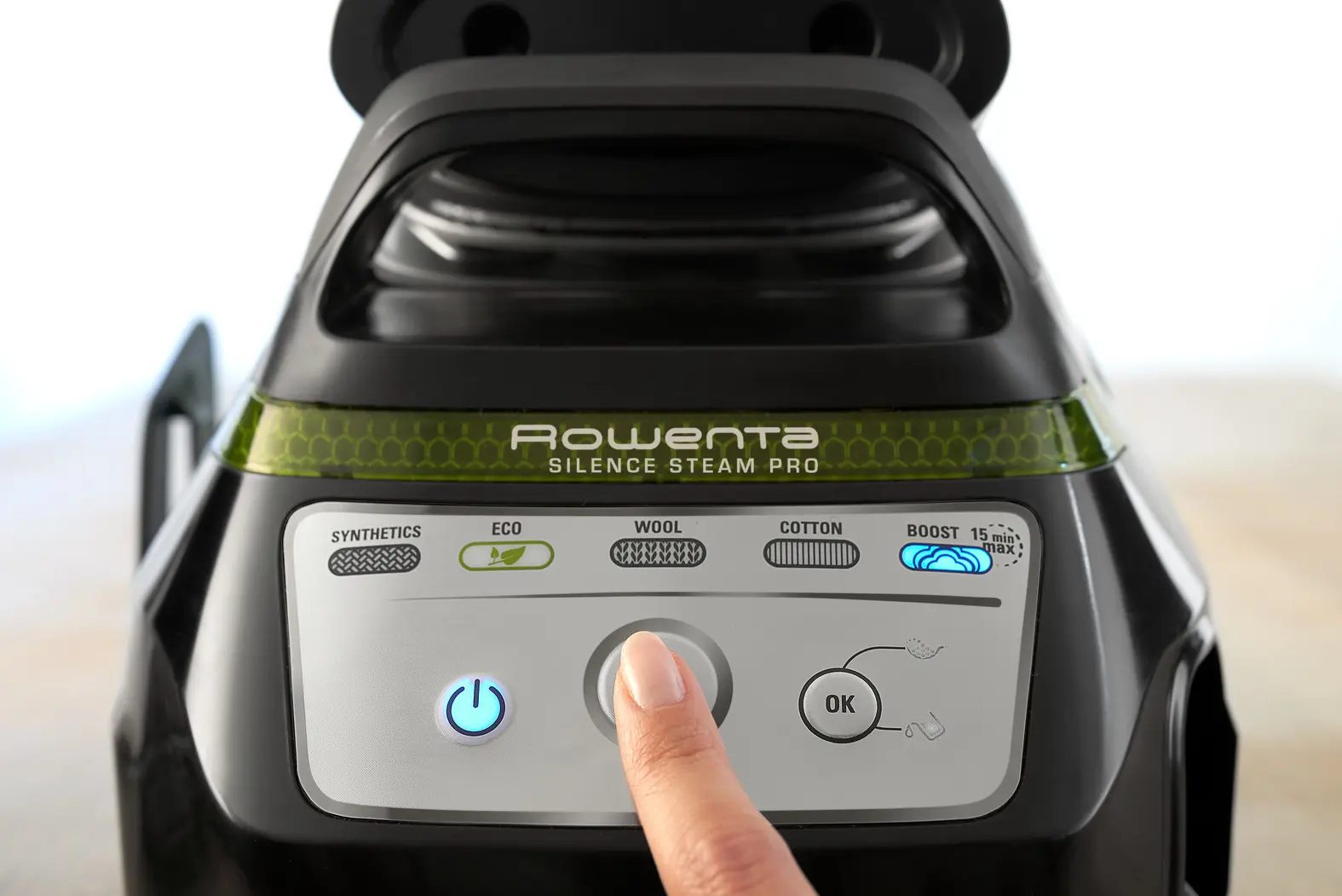 SILENCE STEAM PRO è il sistema stirante più potente e silenzioso di Rowenta. Questa potente caldaia a vapore ad alta pressione assicura risultati straordinari anche sui tessuti più difficili da trattare: Gli 8 bar di pressione del vapore consentono di risparmiare tempo con sessioni di stiratura efficienti e un getto di vapore da 600 g/min ti permette di sconfiggere anche le pieghe più ostinate. La piastra brevettata Microsteam 400HD 3De Laser di questa caldaia assicura la migliore distribuzione del vapore sul mercato* per massimizzare l’efficienza di stiratura. Questo sistema stirante offre prestazioni che durano nel tempo, grazie al raccoglitore di calcare, fino a 10 volte più efficiente nel catturare il calcare**. Pratico e maneggevole, assicura un risparmio di acqua ed energia fino al 30%***, associato a un design ecologico costituito fino al 45% da materiale riciclato, per un ridotto impatto ambientale.